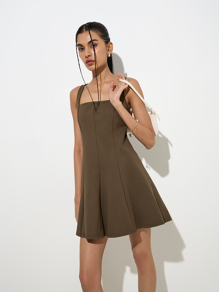 Created from high-quality fabric. this olive dress from Nuon showcases a pleated design in a flattering A-line silhouette. The square neck and sleeveless cut offer a sophisticated and modern style.
