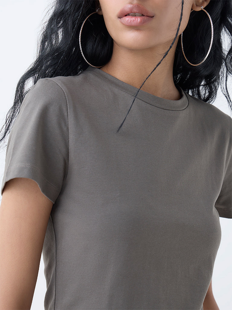 Nuon Olive Solid Cotton-Blend T-Shirt