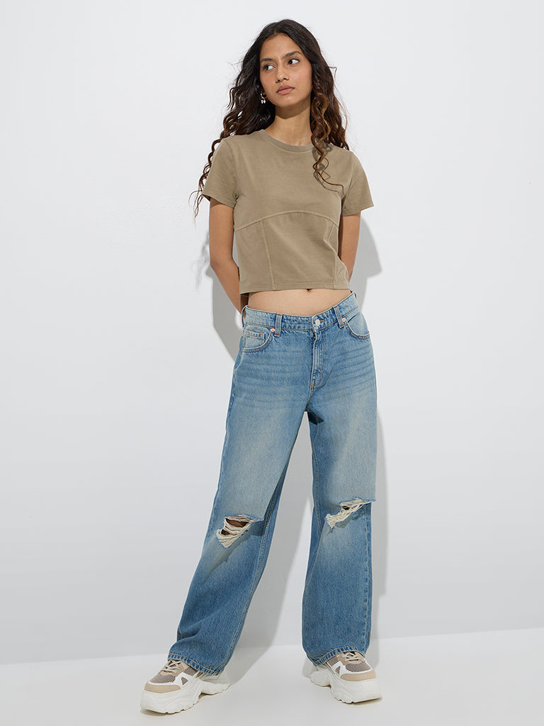 This olive t-shirt from Nuon combines effortless style with everyday comfort. Made from a soft cotton-blend fabric. it features a round neck and short sleeves. making it a versatile piece that pairs seamlessly with both casual and layered looks.