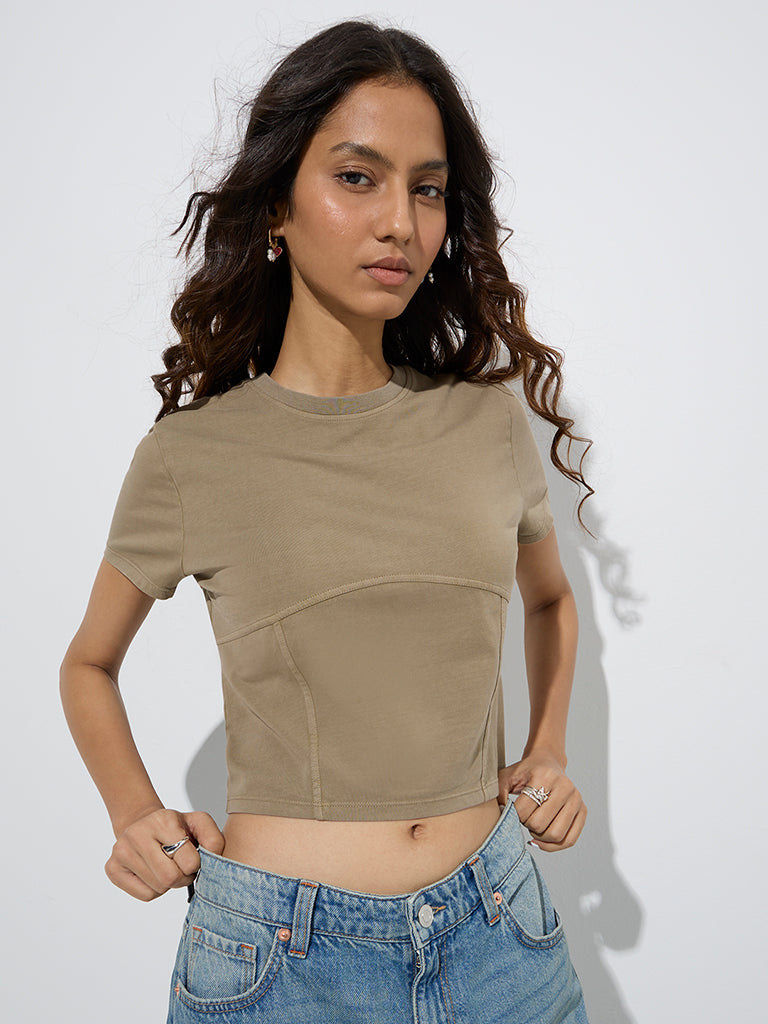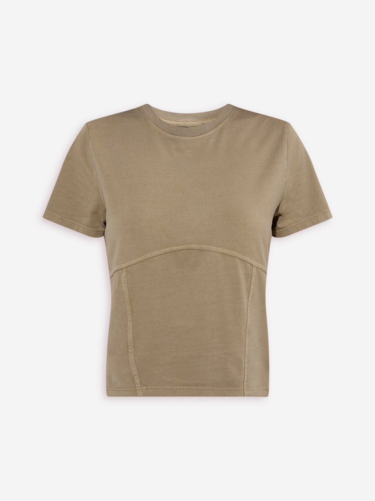 Nuon Olive Solid Cotton-Blend T-Shirt