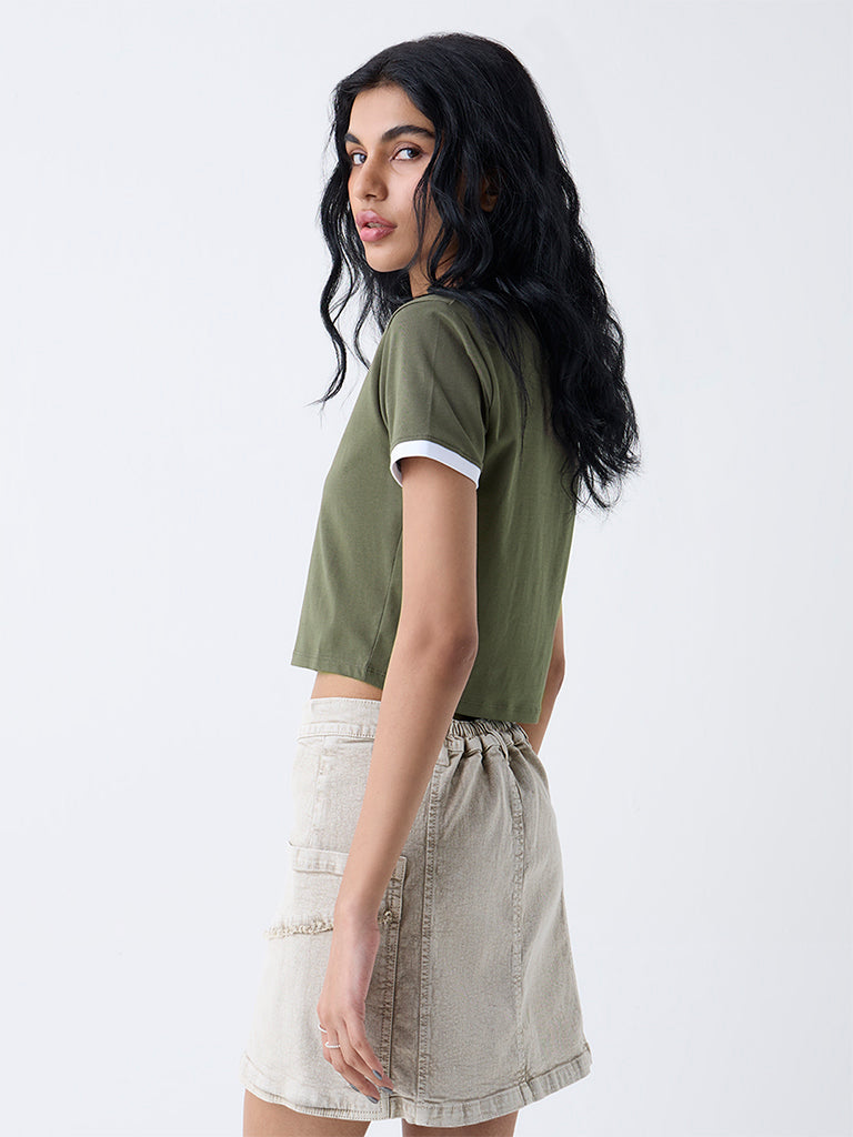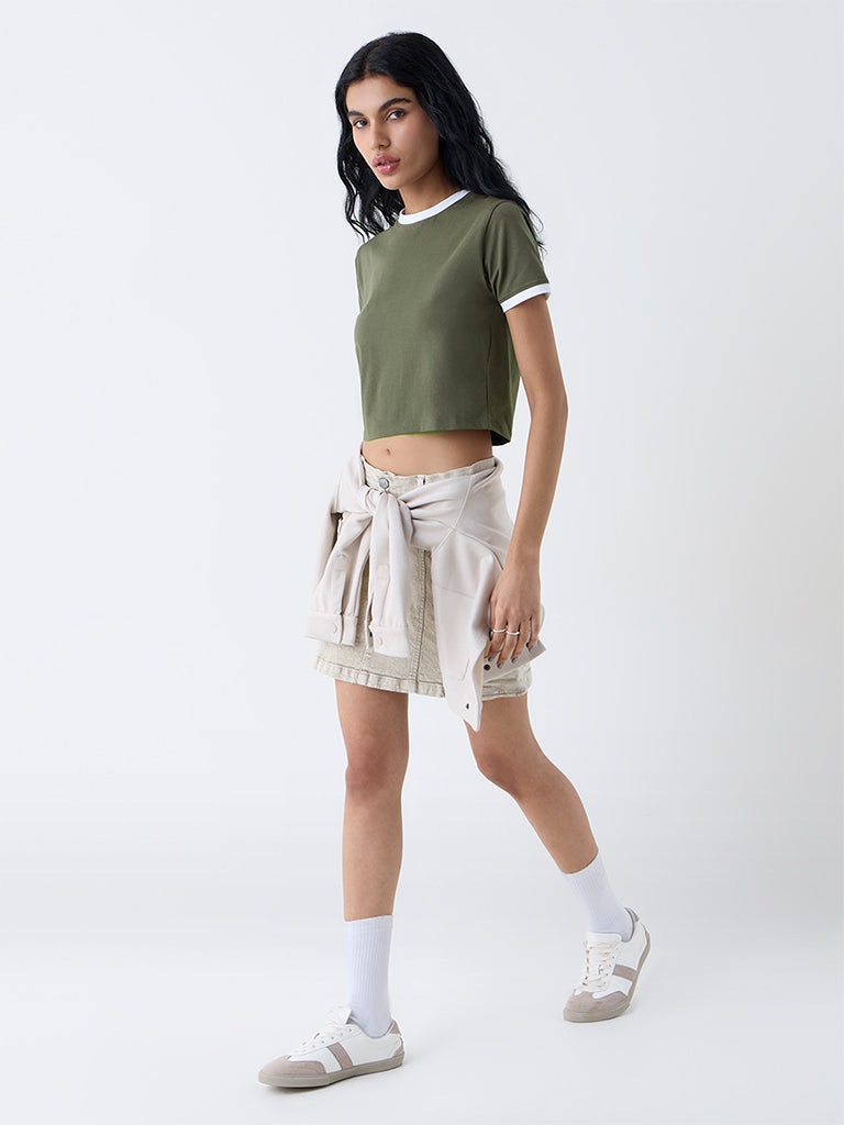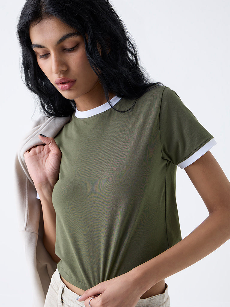 Nuon Olive Solid Cotton-Blend T-Shirt