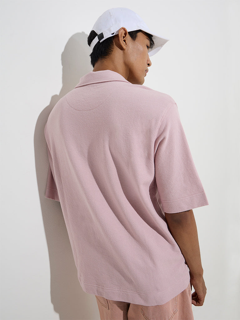 Nuon Pink Text Patterned Relaxed-Fit Cotton Shirt