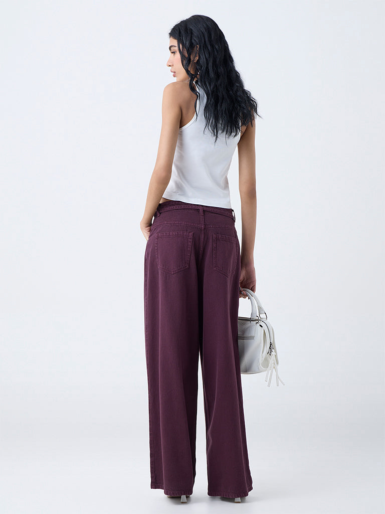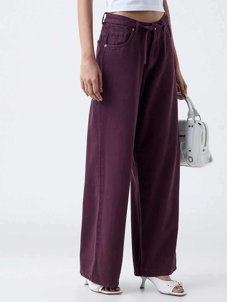 This pair of plum jeans from Nuon is crafted from breathable. lightweight fabric in a flattering high-rise silhouette. Featuring a buttoned waist. belt loops. a zipper placket and a five-pocket design. it combines function with style. Completed with a detachable belt. it offers a versatile finish for everyday wear.