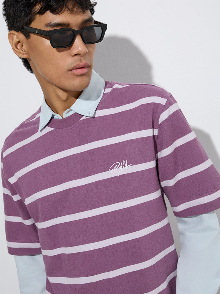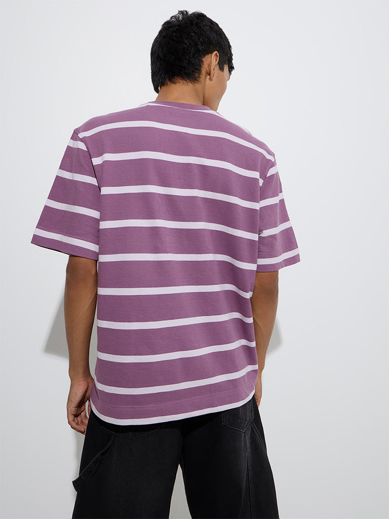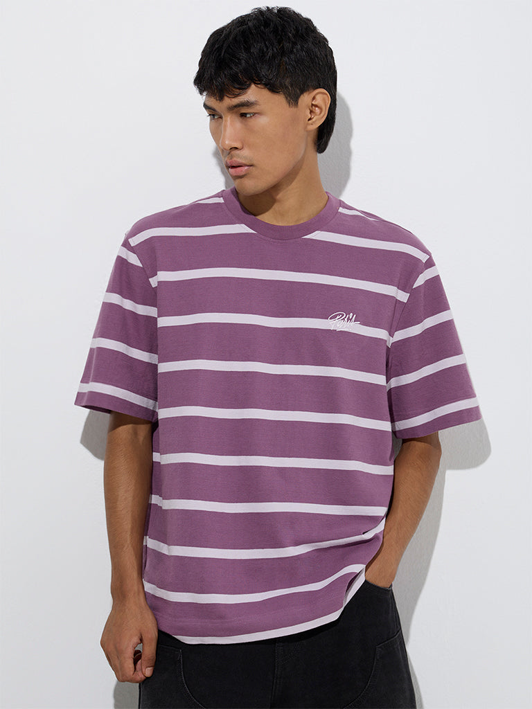 Nuon Purple Stripe Relaxed-Fit Cotton T-Shirt