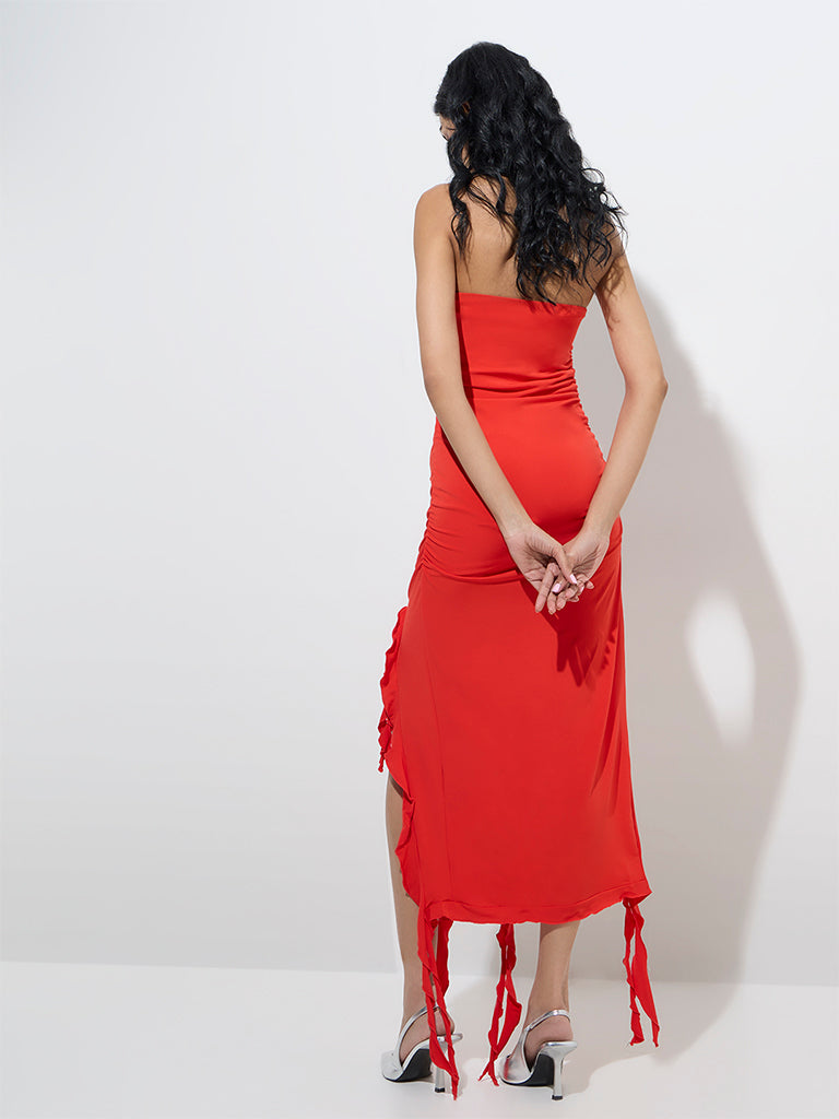 Nuon Red Ruffle-Detailed Bodycon Tube Dress