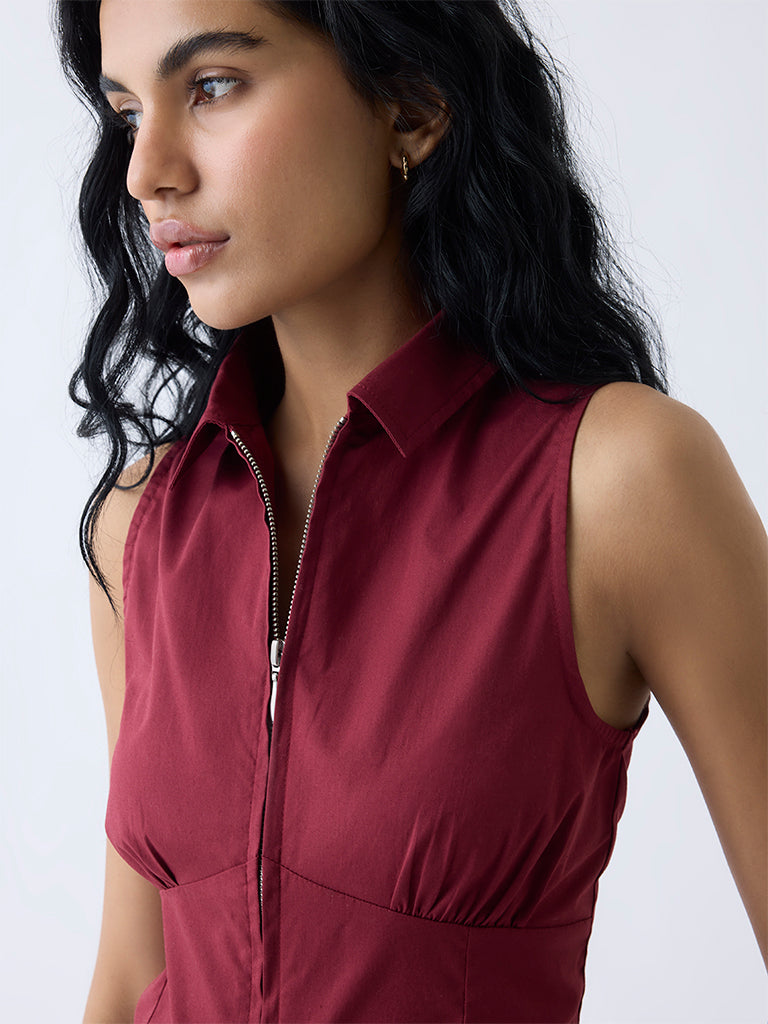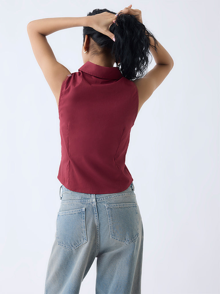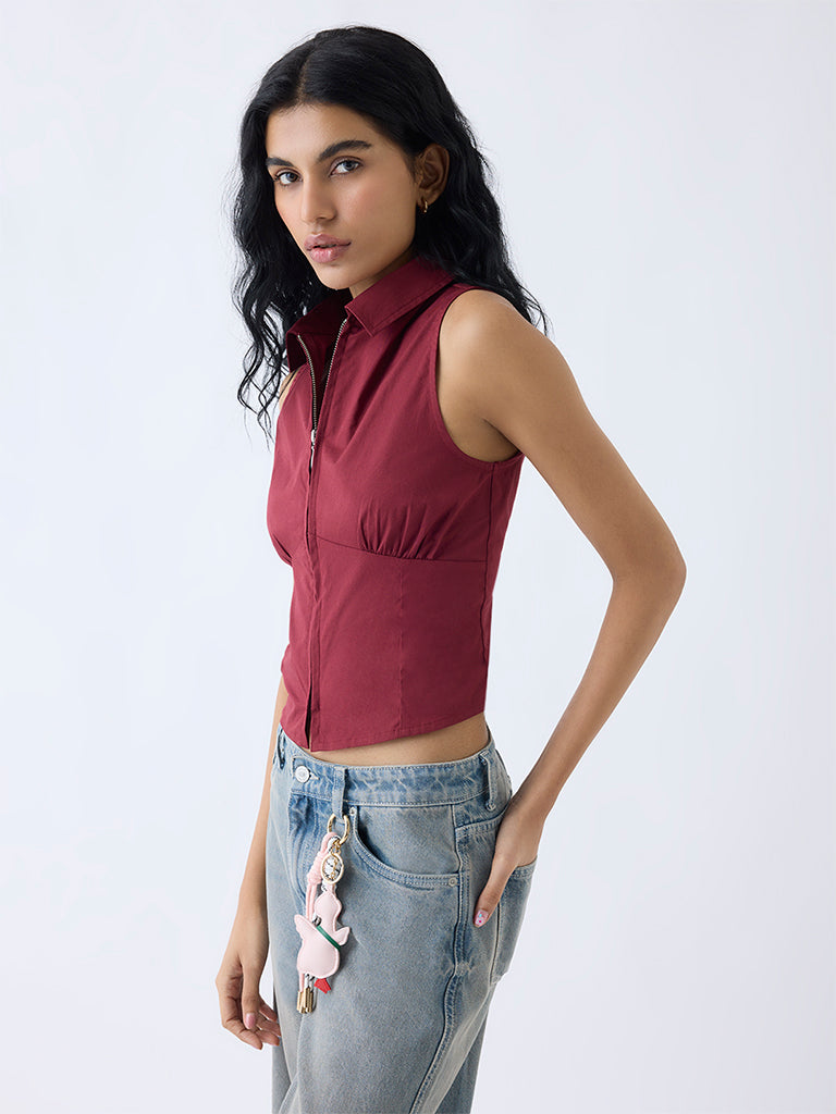 Fashion-forward and effortlessly chic. this red top from Nuon brings vibrant energy to your casual edit. Cut from a cotton-rich fabric for daily comfort. it features a collar. zipper placket. and sleeveless silhouette that’s clean and contemporary.