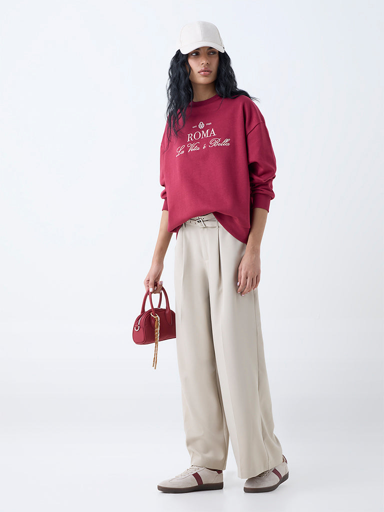 Turn heads in relaxed style with this red sweatshirt from Nuon. crafted from a durable fabric for all-day comfort. Featuring a classic round neck and dropped sleeves. it strikes the perfect balance between cozy and contemporary. Bold text detailing at the front adds a playful edge. making it ideal for layering over jeans or joggers for effortless weekend style.