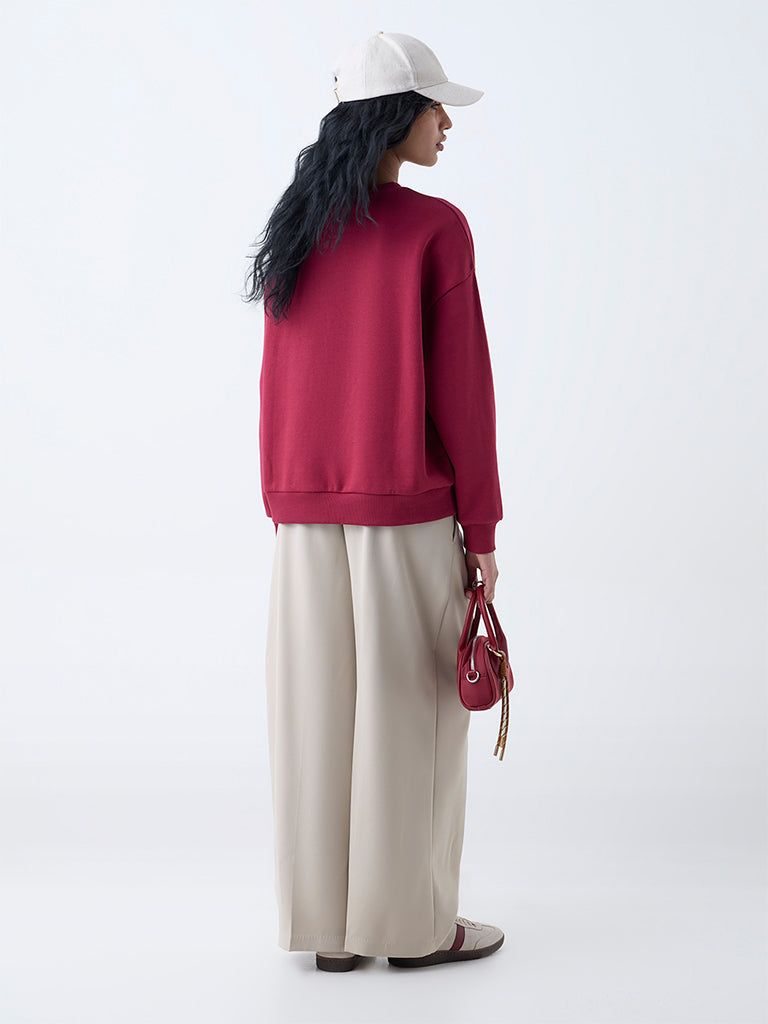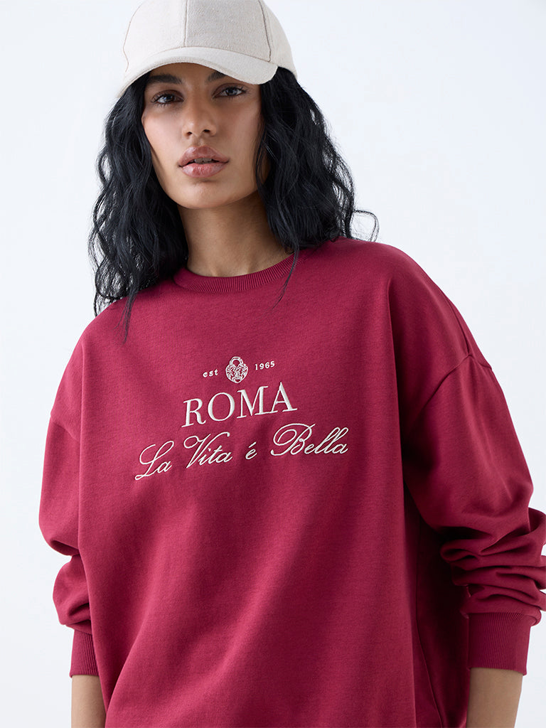 Nuon Red Text Design Cotton-Blend Sweatshirt