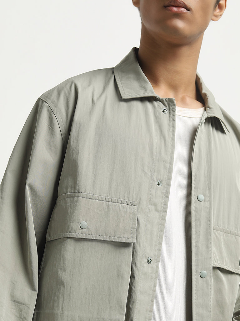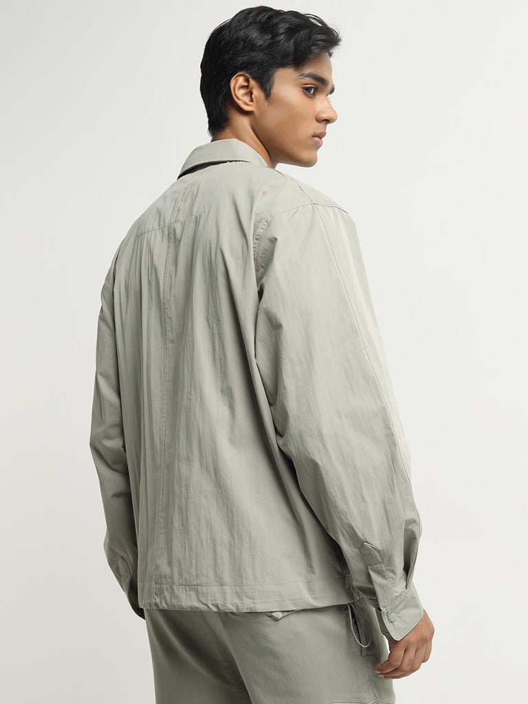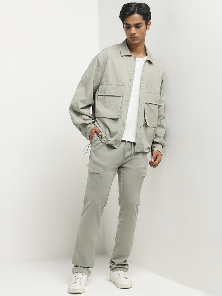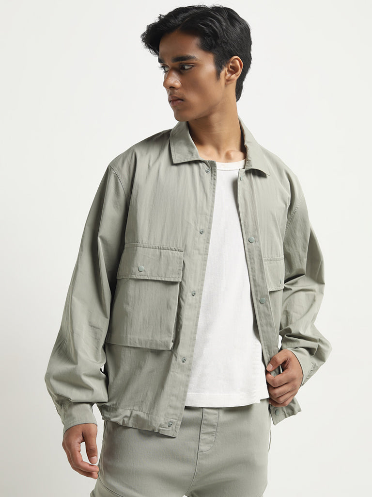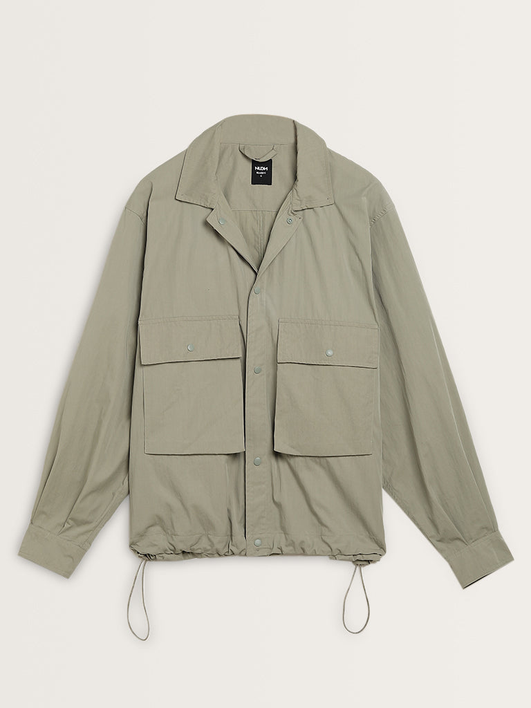 Sculpted from a cotton-rich fabric. this sage jacket from Nuon features a relaxed profile. It comes fitted with a spread collar that extends to a button placket and full sleeves. The drawstrings at the hemline and chunky pockets in the front elevate its convenience level.