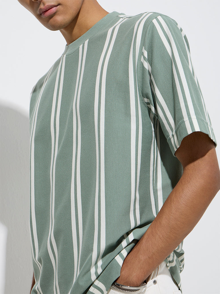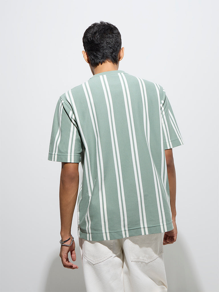 Nuon Sage Stripe Printed Relaxed-Fit T-Shirt