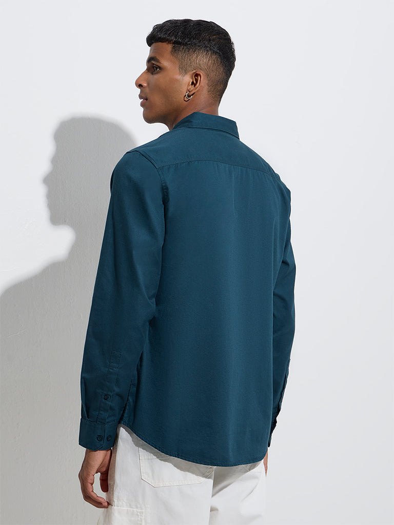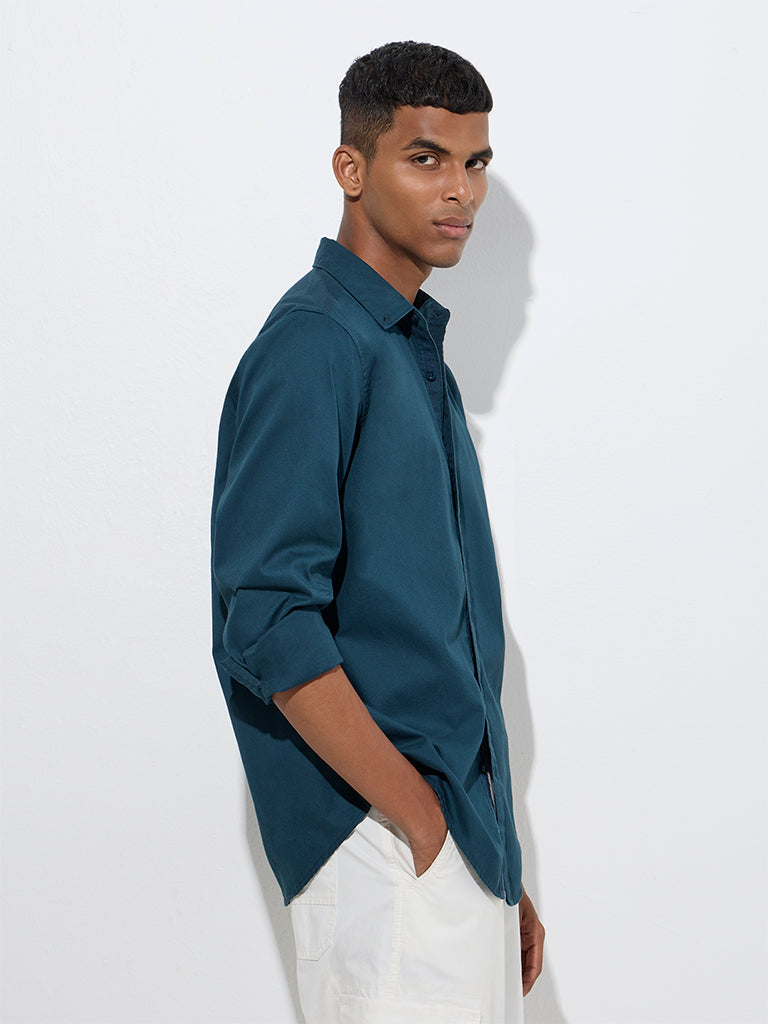 Nuon Teal Solid Slim-Fit Cotton Shirt