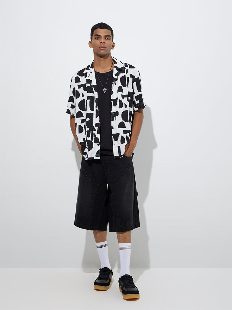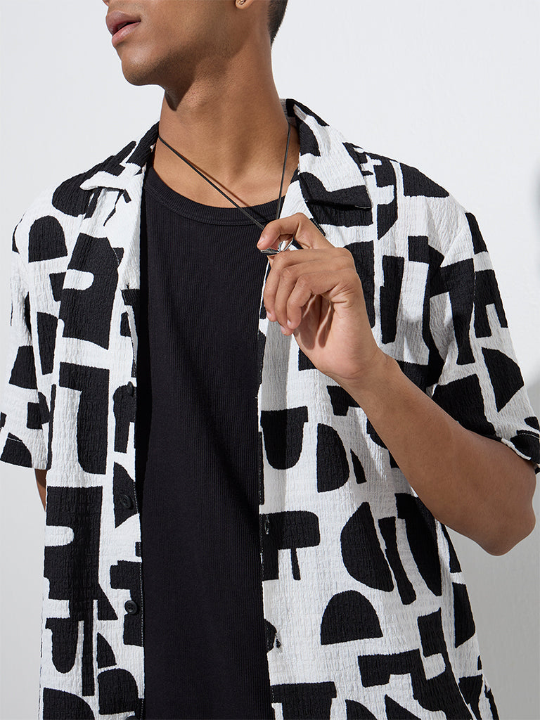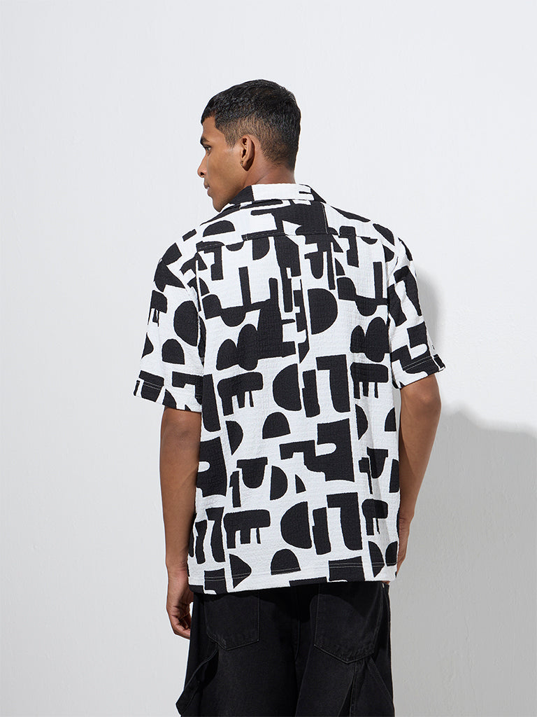 Nuon White Abstract Patterned Relaxed-Fit Shirt