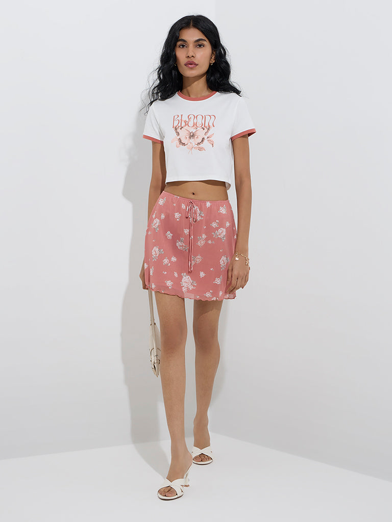 This white t-shirt from Nuon spotlights a butterfly motif paired with text prints. adding a soft yet statement touch to your casual edit. Spun from a sumptuous cotton-blend fabric. it offers a relaxed fit and is styled with a classic round neck and short sleeves for all-day comfort and easy wear.