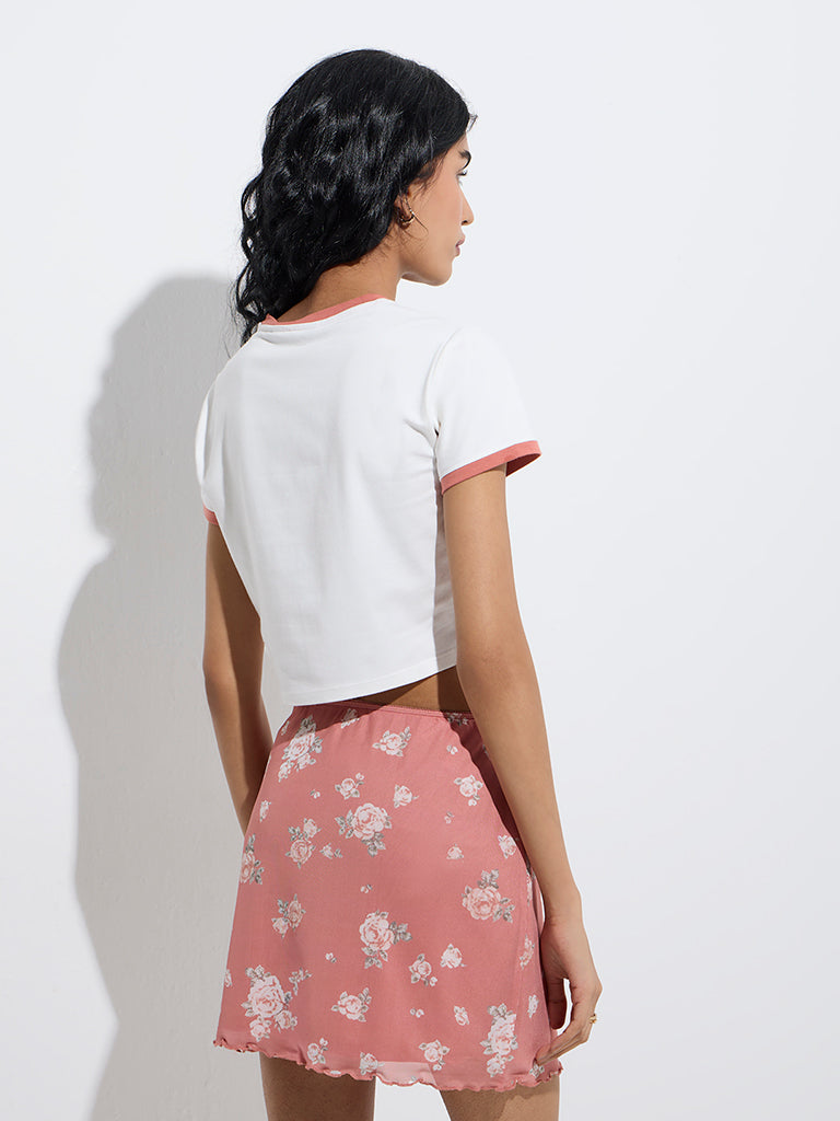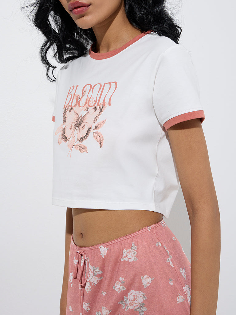 Nuon White Butterfly Design Cotton-Blend T-Shirt