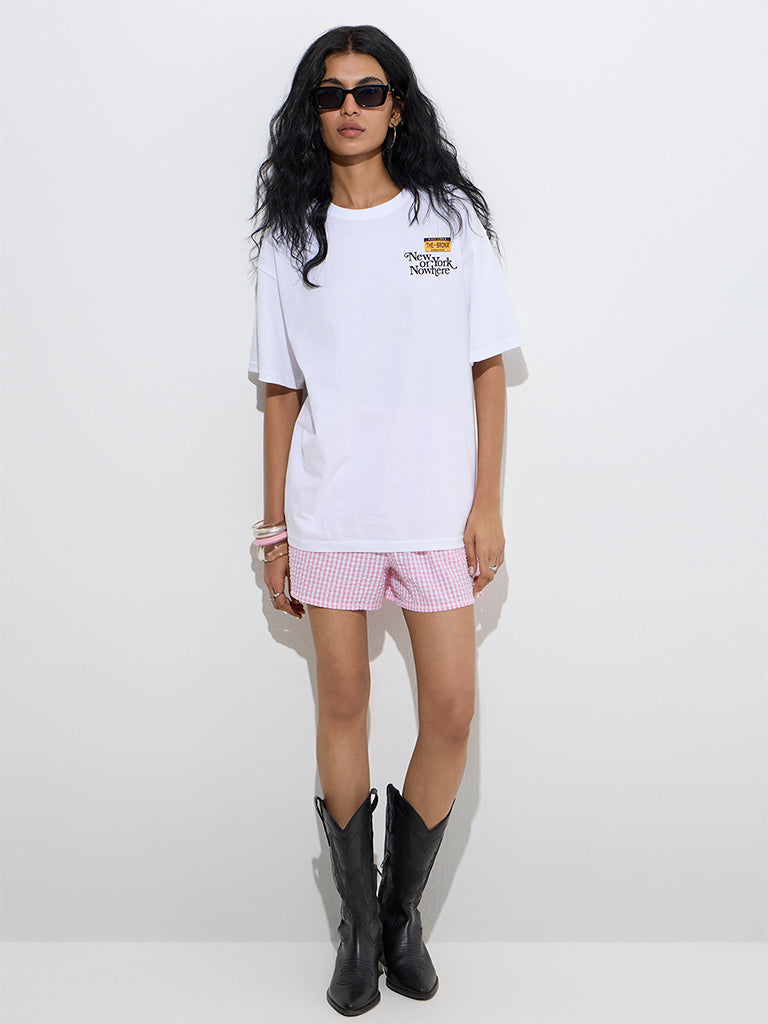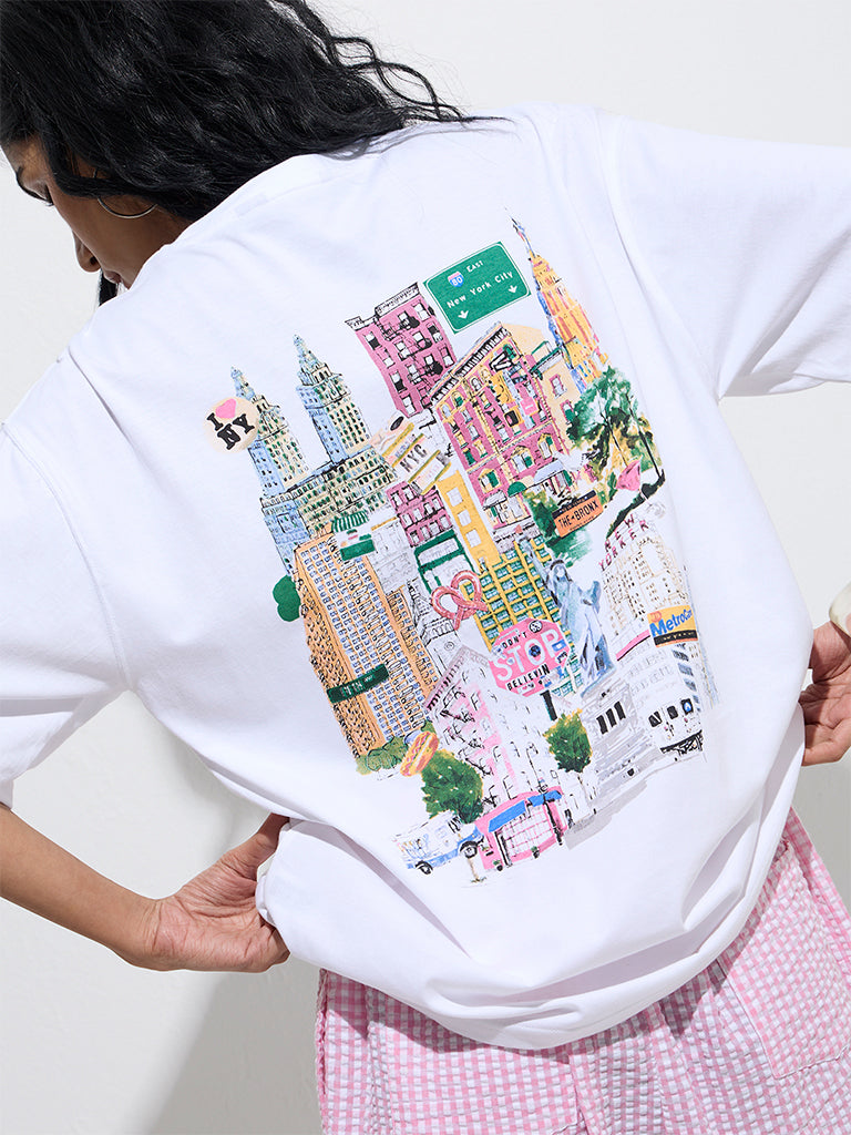 Nuon White Cityscape Detailed Cotton T-Shirt