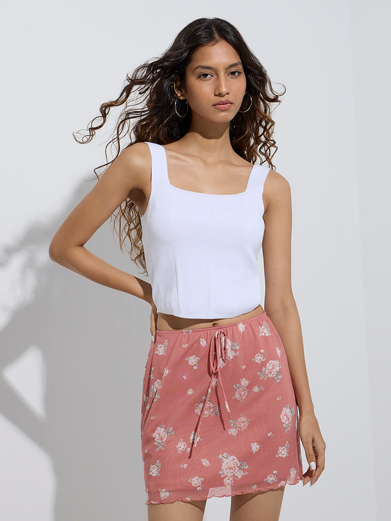 Fashioned in a corset-style silhouette. this white top from Nuon is defined by its square neck and sleeveless cut. Woven from a knitted fabric. it offers a comfortable yet stylish option for everyday summer wear.