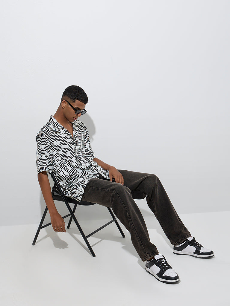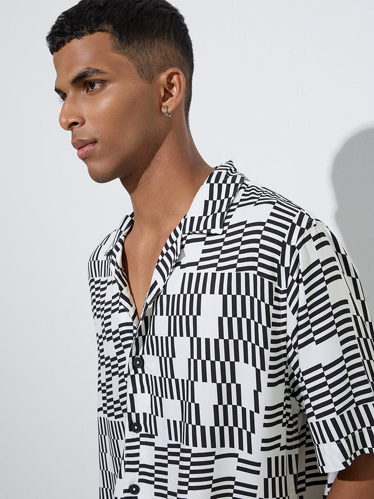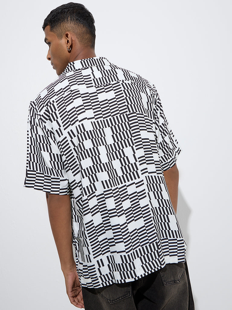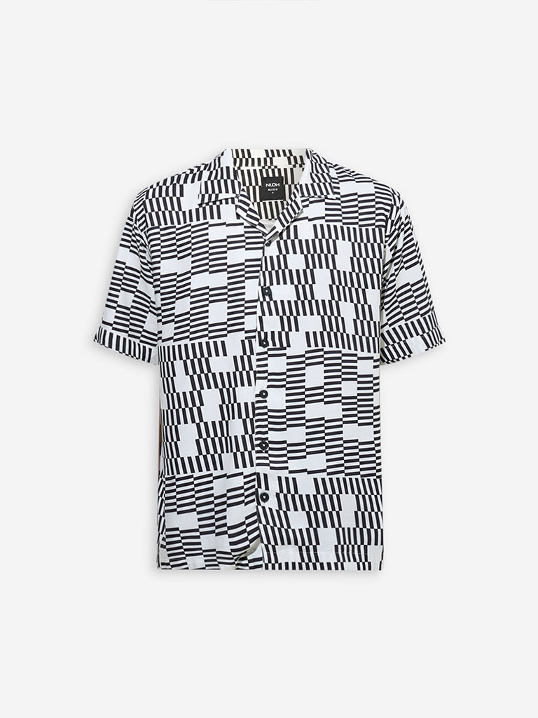 Nuon White Geometric Printed Relaxed-Fit Shirt