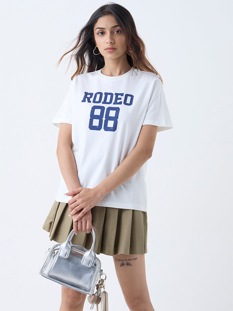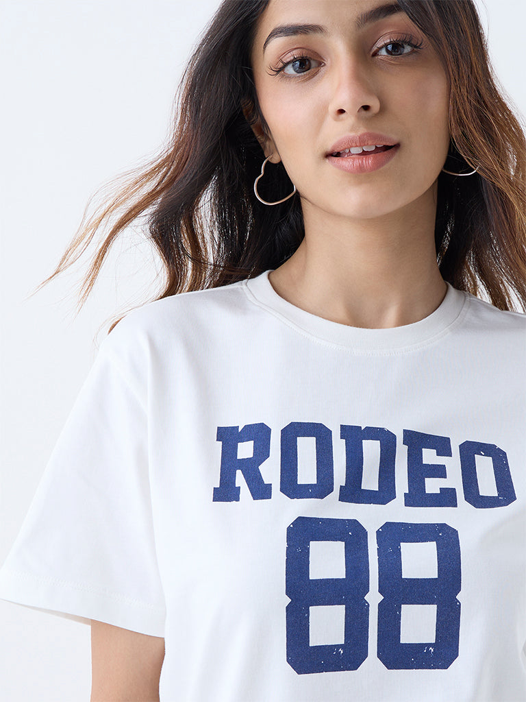 This white t-shirt from Nuon is crafted from pure cotton fabric for effortless comfort. Featuring bold numerical prints and text designs. it is designed with a round neck and short sleeves. offering a relaxed fit. An easy-going choice for everyday summer wear.