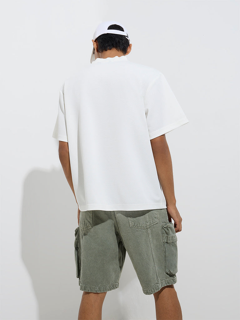 Nuon White Numerical Printed Relaxed-Fit T-Shirt