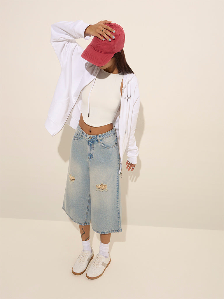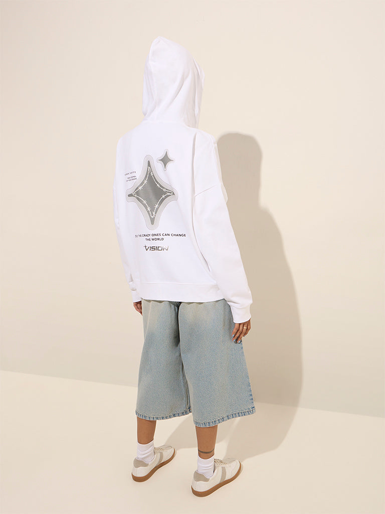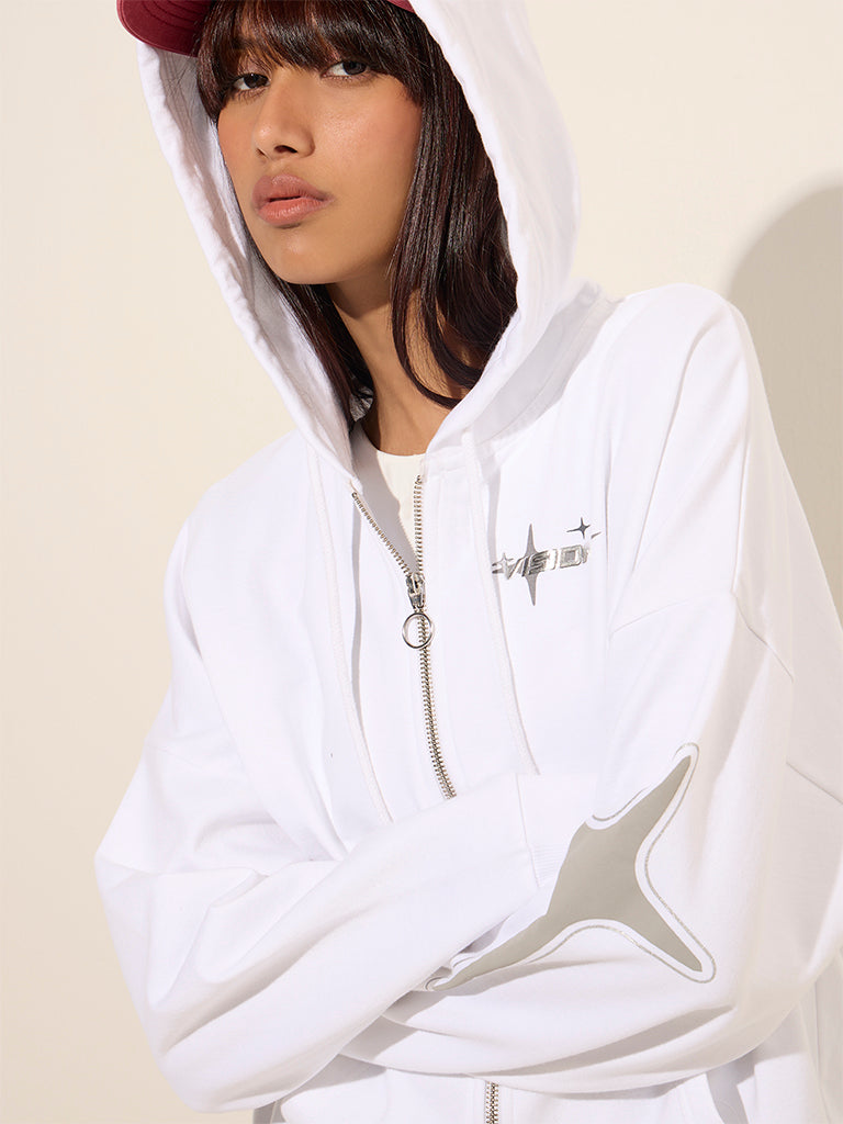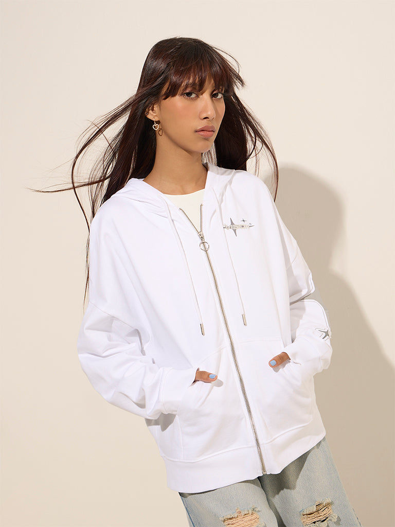 Nuon White Printed Cotton Hooded Jacket