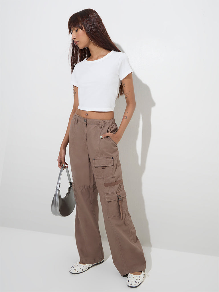 Be the first to review “Nuon White Ribbed Cut-Out Detailed Crop T-Shirt”