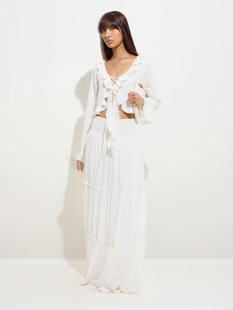 Nuon White Ruffle-Detailed Top