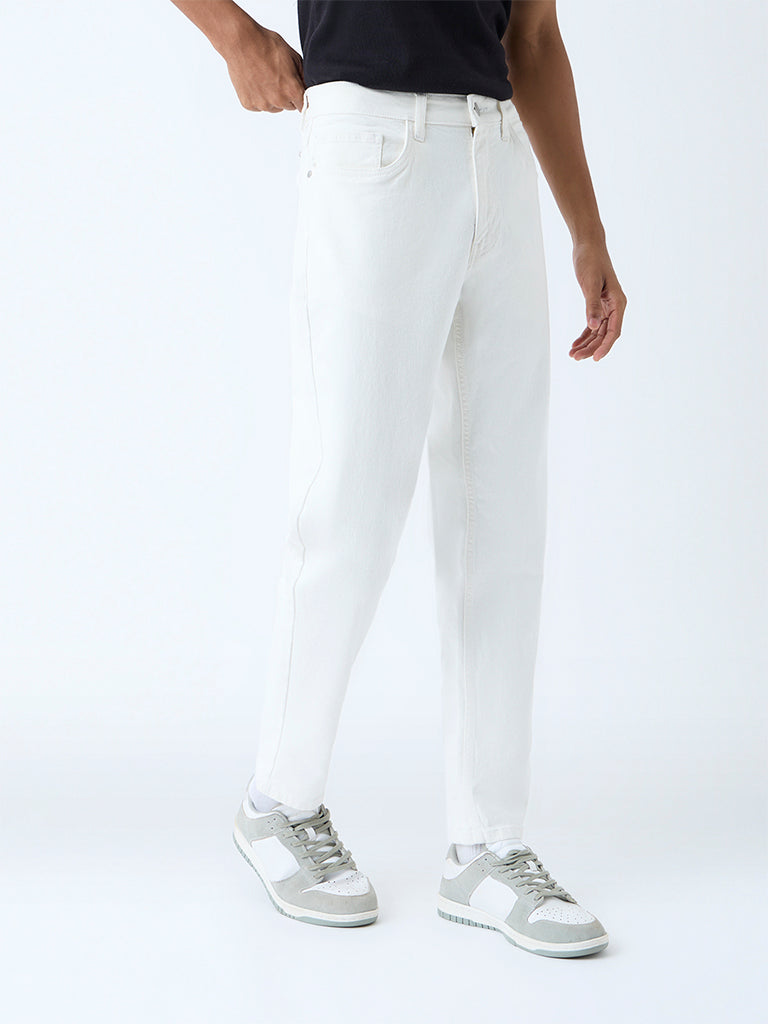 Turn sidewalks into runways with these white slim-fit jeans from Nuon. Constructed from pure cotton for breathable comfort. they feature a classic five-pocket design and secure button-and-zip fastening for a personalised fit.