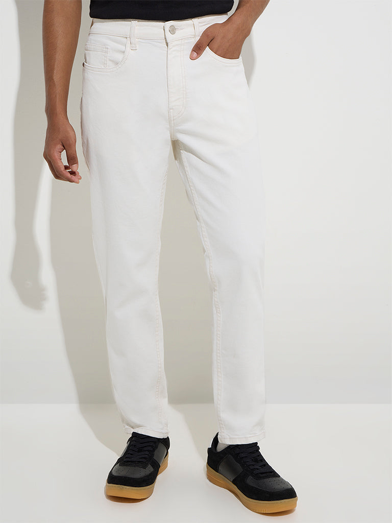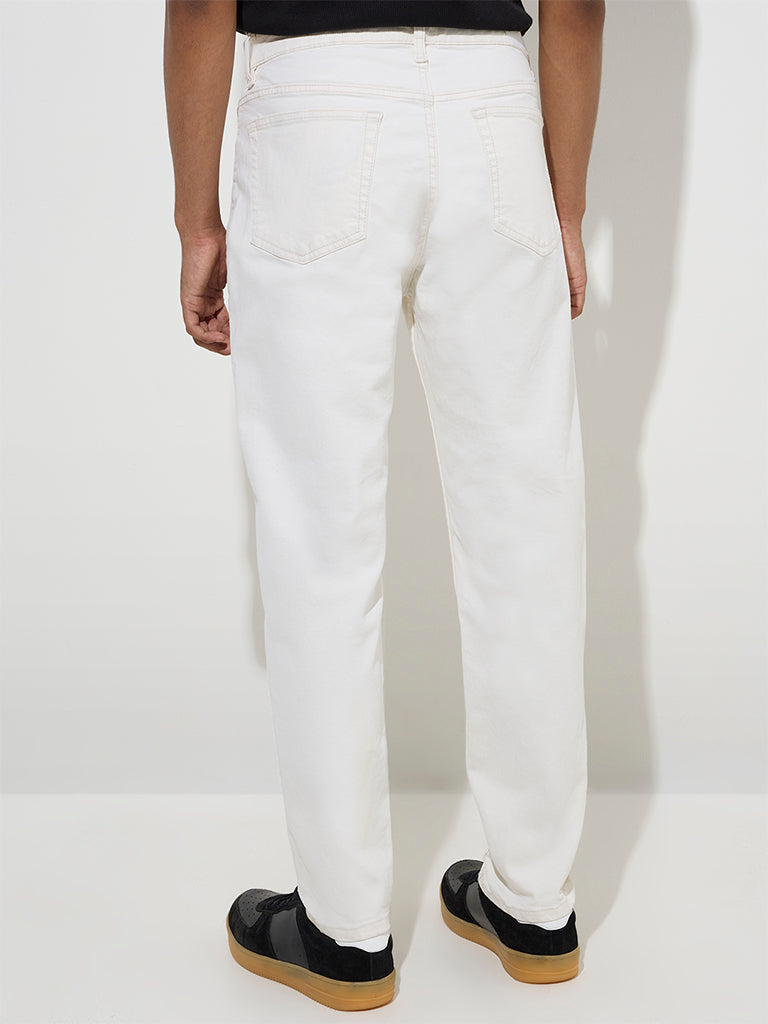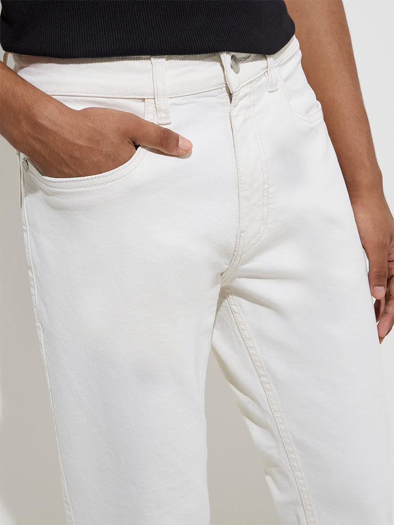 Nuon offers a clean and versatile essential with these white jeans. Sculpted in a slim profile. they’re crafted from a durable cotton-blend material for added comfort. Finished with a buttoned waistband. belt loops. zipper fly. and multiple pockets for everyday ease.