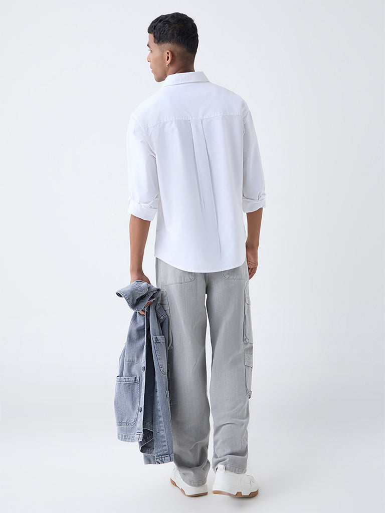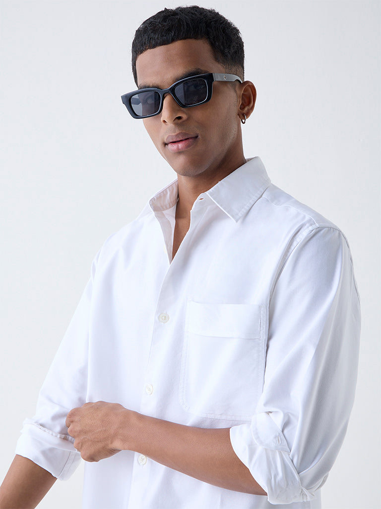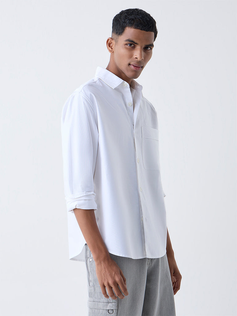 Nuon White Solid Relaxed-Fit Cotton Shirt