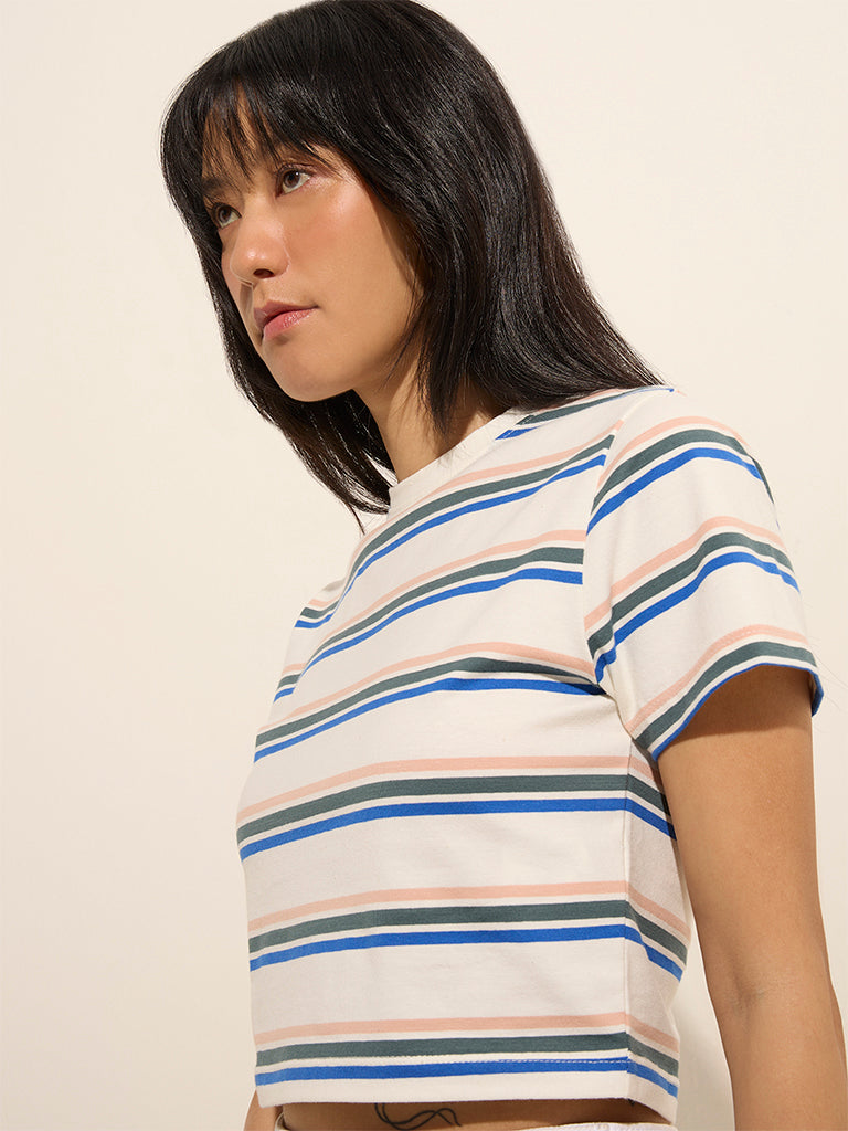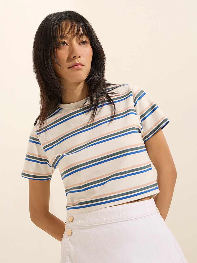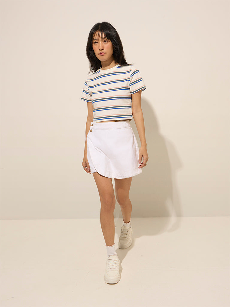 Be the first to review “Nuon White Striped Cotton-Blend T-Shirt”