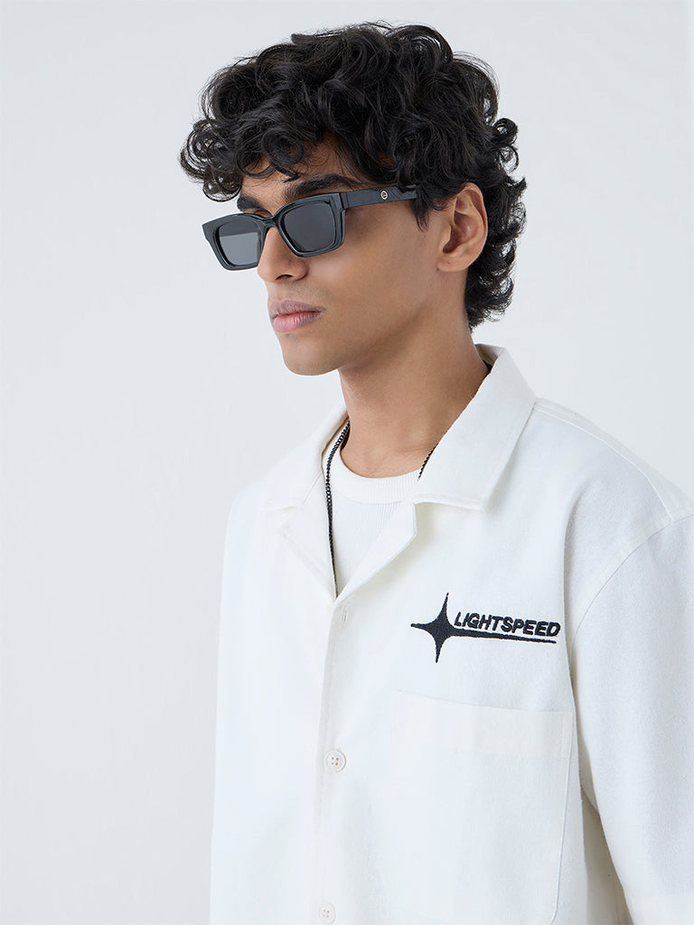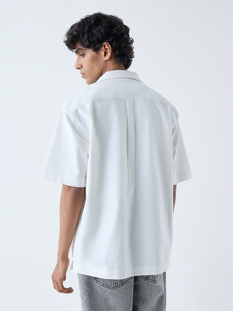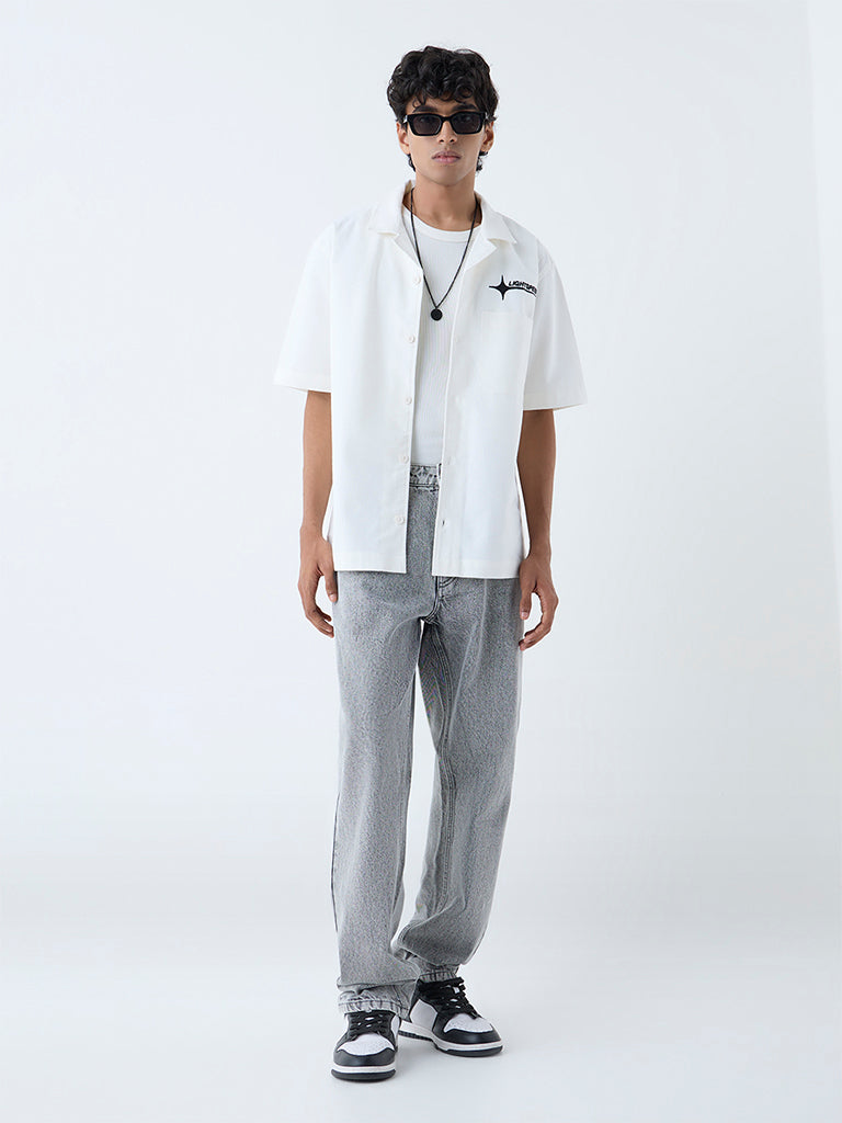 Nuon White Text Detailed Relaxed-Fit Shirt