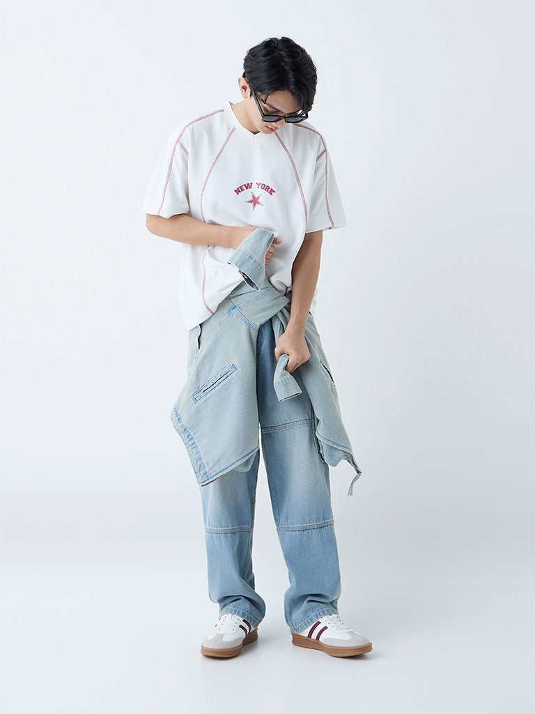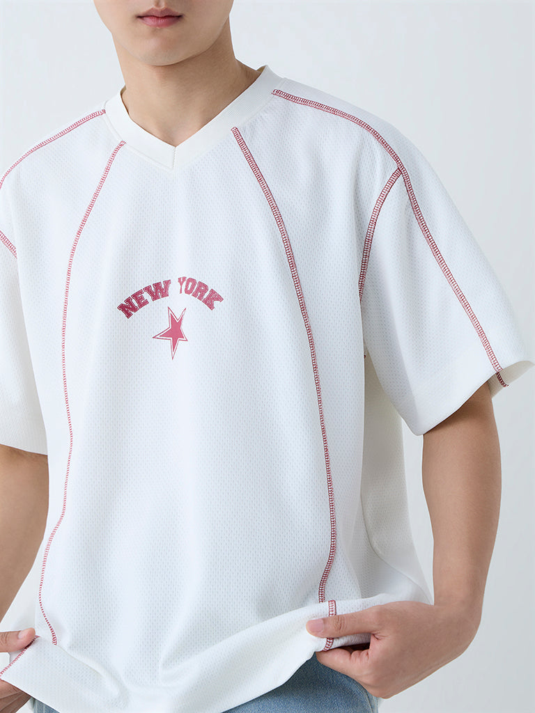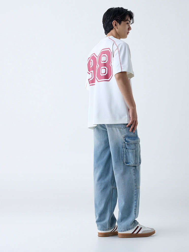 Nuon White Text Printed Relaxed-Fit T-Shirt