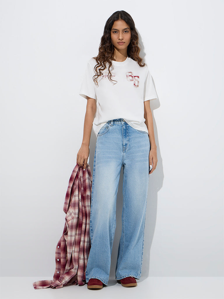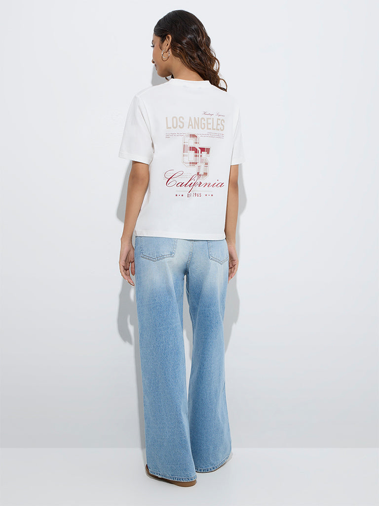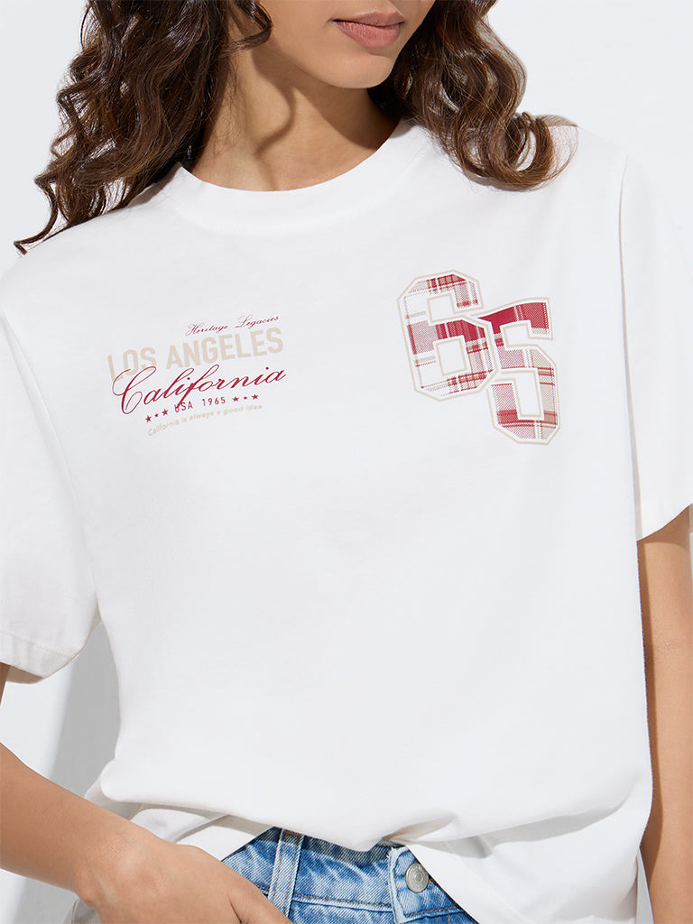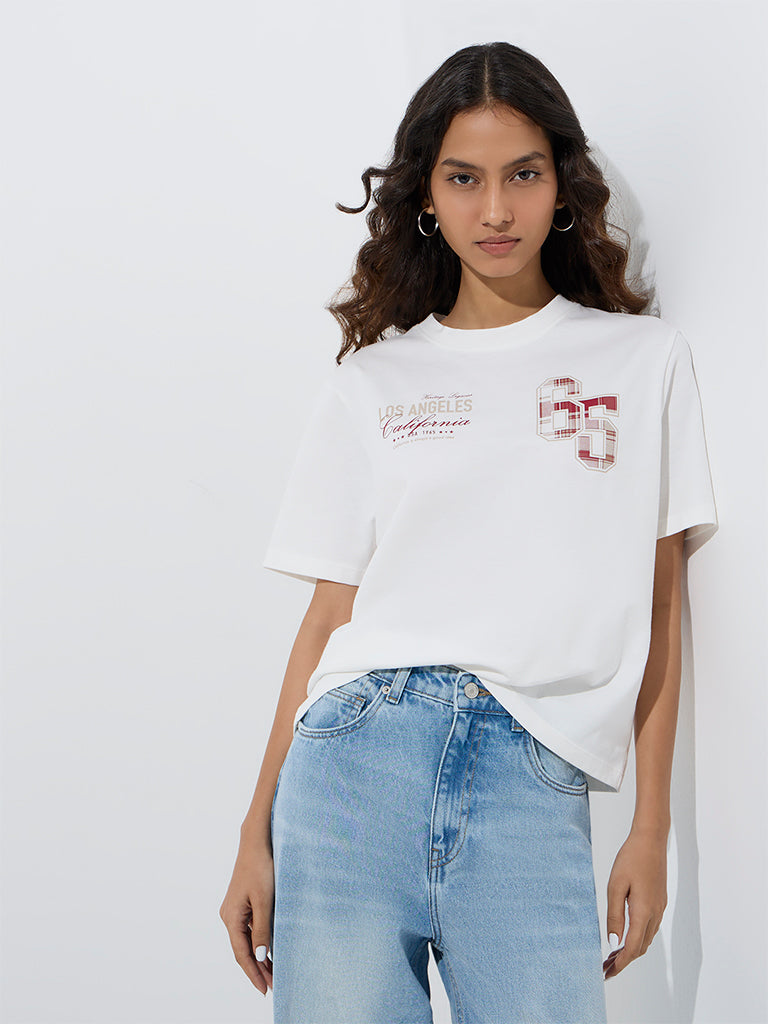 This white t-shirt from Nuon sports playful text and numerical prints on the front. Created from pure cotton. it is finished with a classic round neck and half sleeves for all-day comfort.