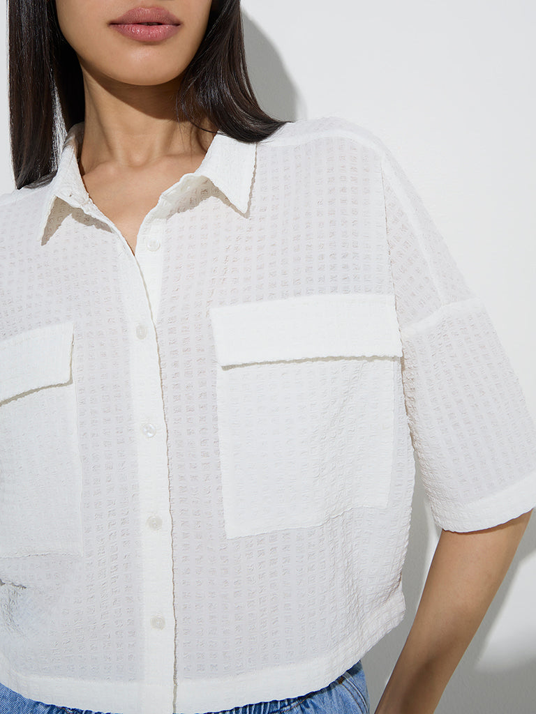 Be the first to review “Nuon White Waffle-Textured Shirt”