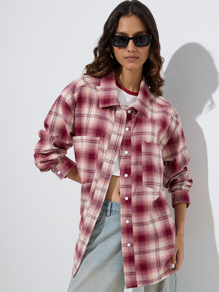 Be the first to review “Nuon Wine Checkered Cotton Shirt”