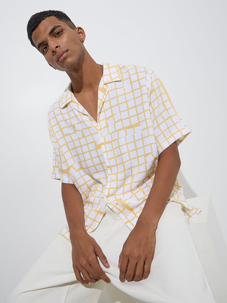 Nuon Yellow Checkered Relaxed-Fit Shirt