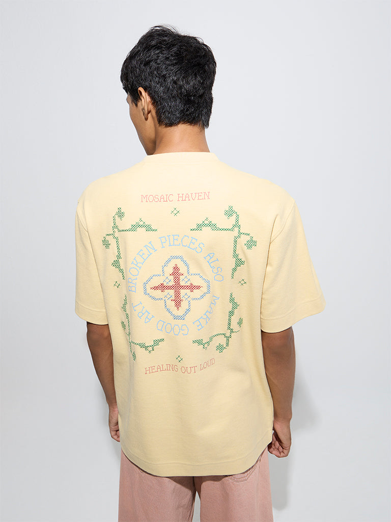 Nuon Yellow Embroidered Relaxed-Fit Cotton T-Shirt