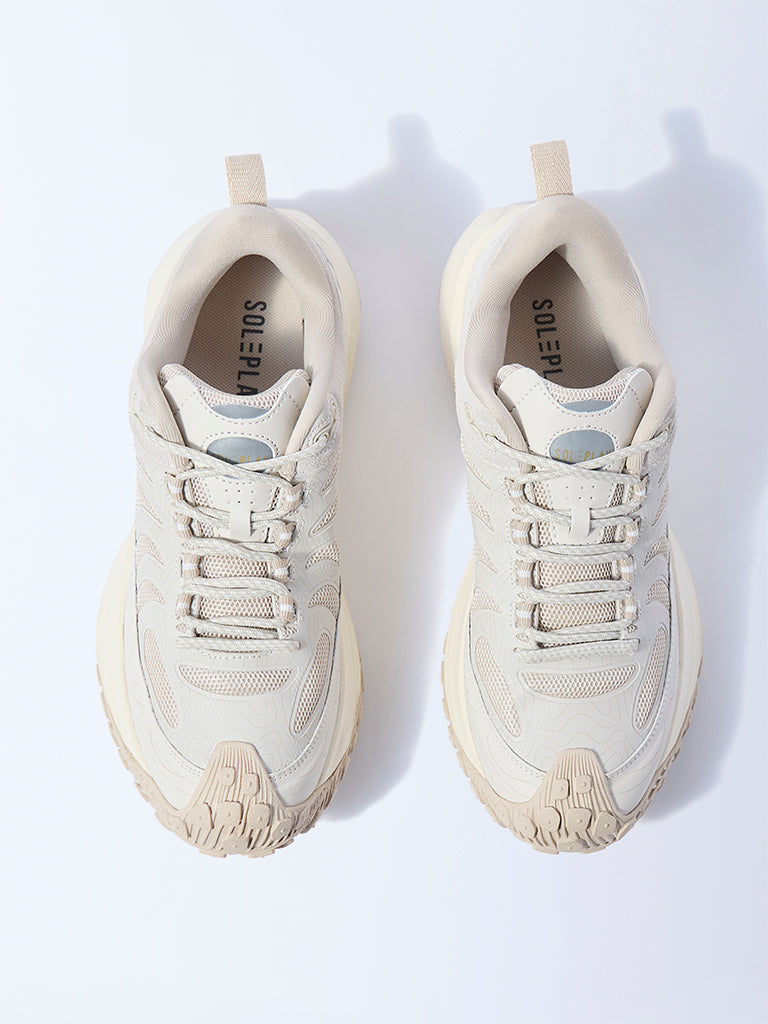 SOLEPLAY Beige Knit-Textured Lace-Up Sneakers