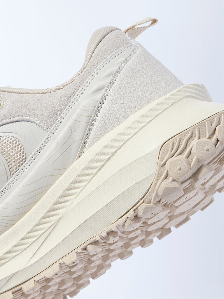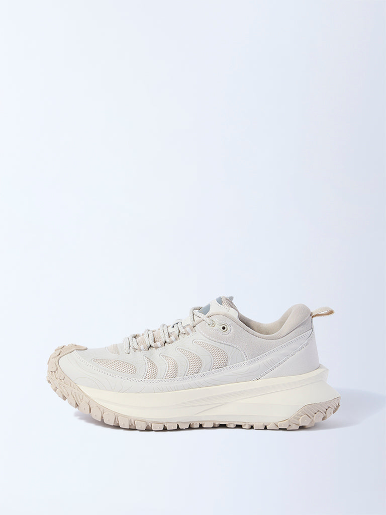 Redefine your stride with these beige sneakers from Soleplay. The knit-textured upper offers breathable comfort. while cushioned midsoles absorb impact and rugged outsoles deliver steady grip with every step.