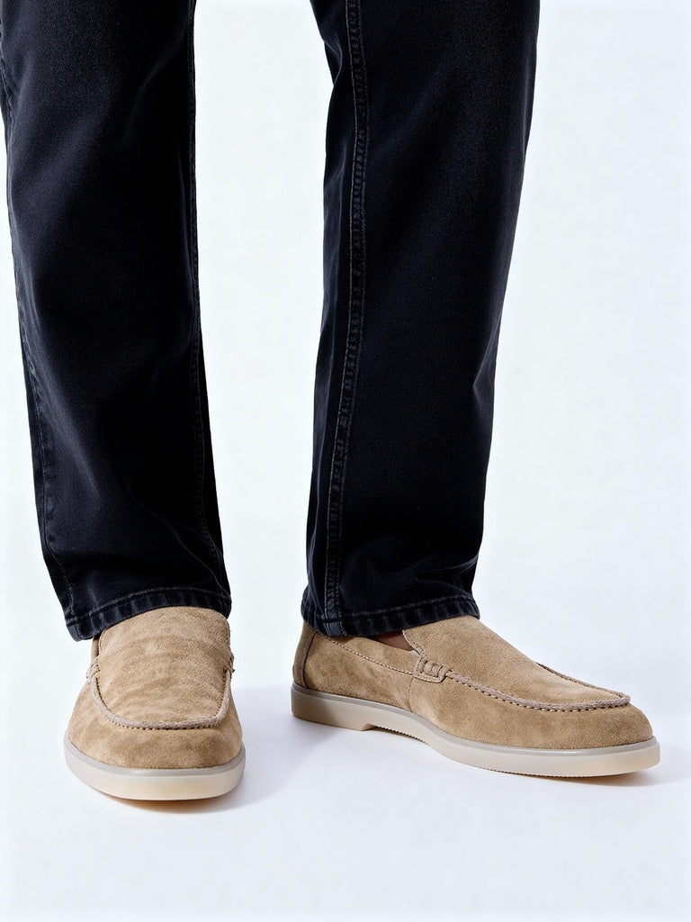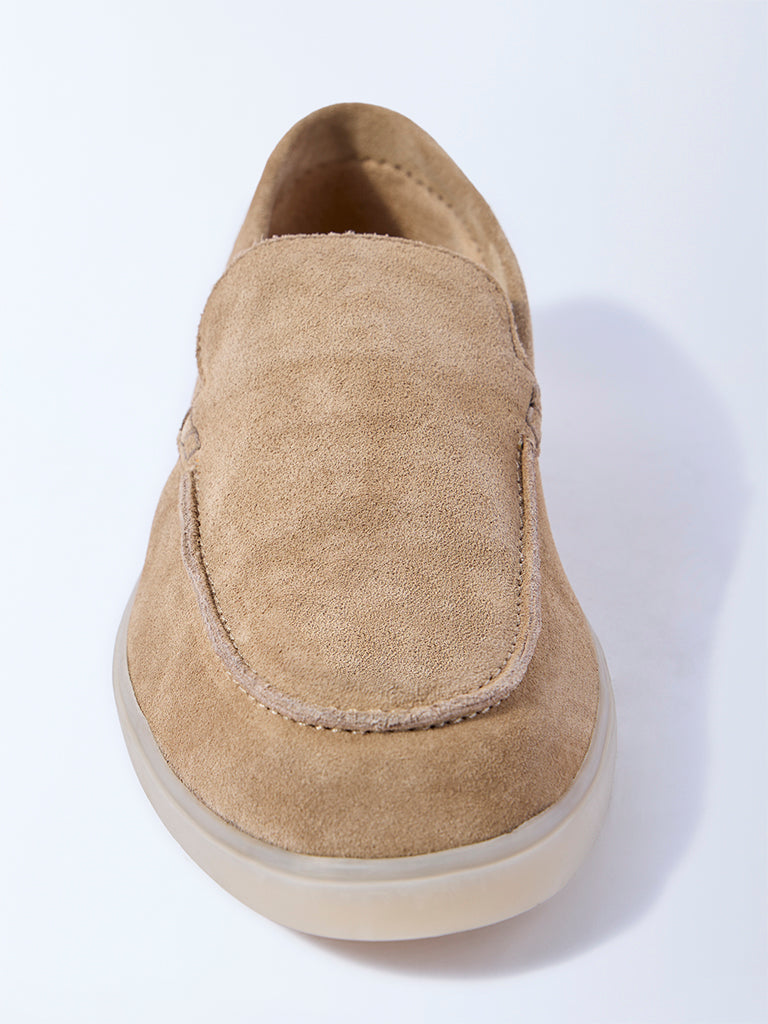 These beige loafers from Soleplay are a versatile pair that transitions easily from weekday polish to weekend ease. The soft suede-like texture lends a refined edge. while the contrasting midsole adds a contemporary touch. Designed with a cushioned footbed and a textured outsole. they balance comfort with everyday wearability.