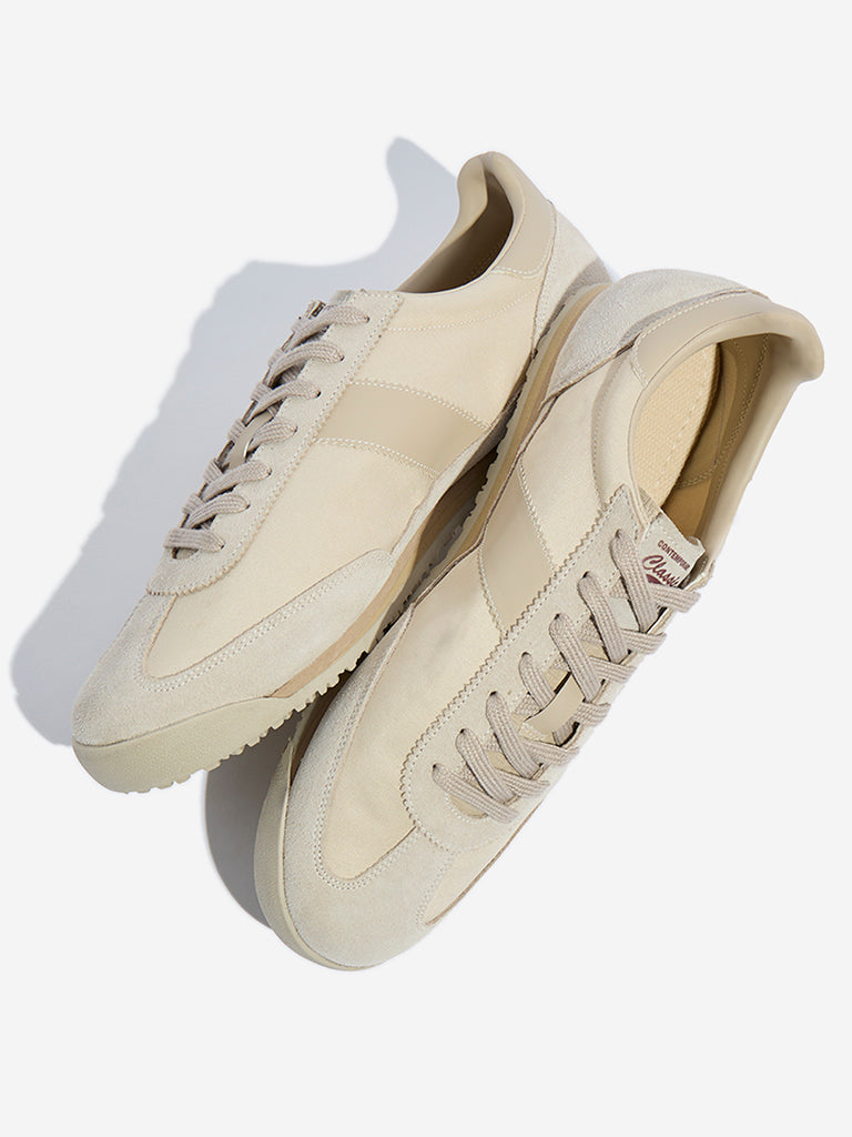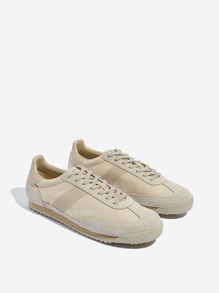 These beige sneakers from Soleplay are fashioned with a suede and synthetic upper with white colour-block detailing. Designed for comfort and durability. they come with a cushioned midsole. lace-up closure. and a traction outsole for reliable support.