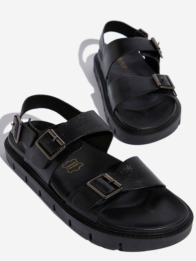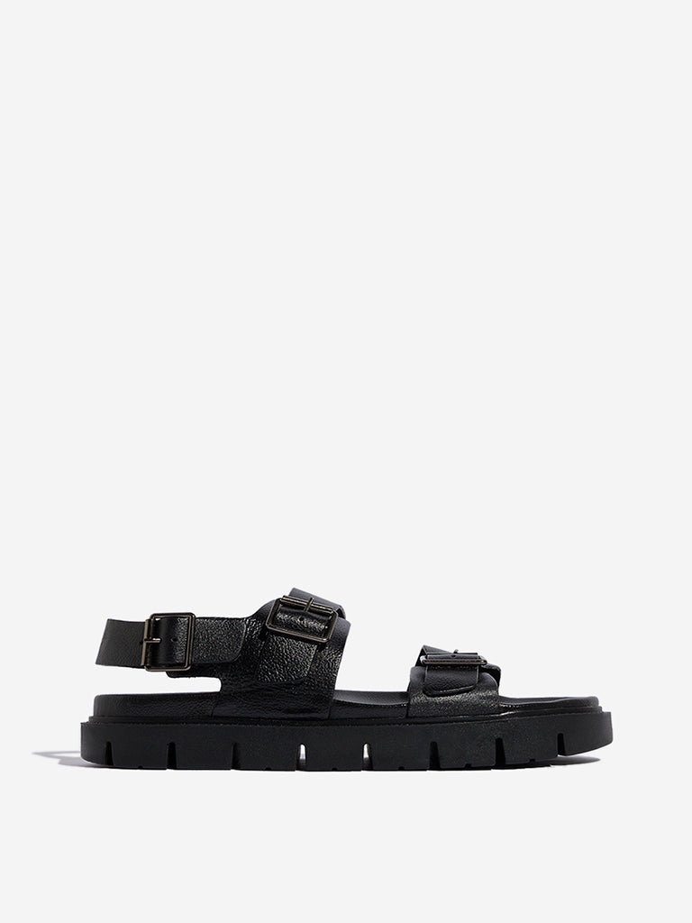 SOLEPLAY Black Dual-Strap Buckled Leather Sandals