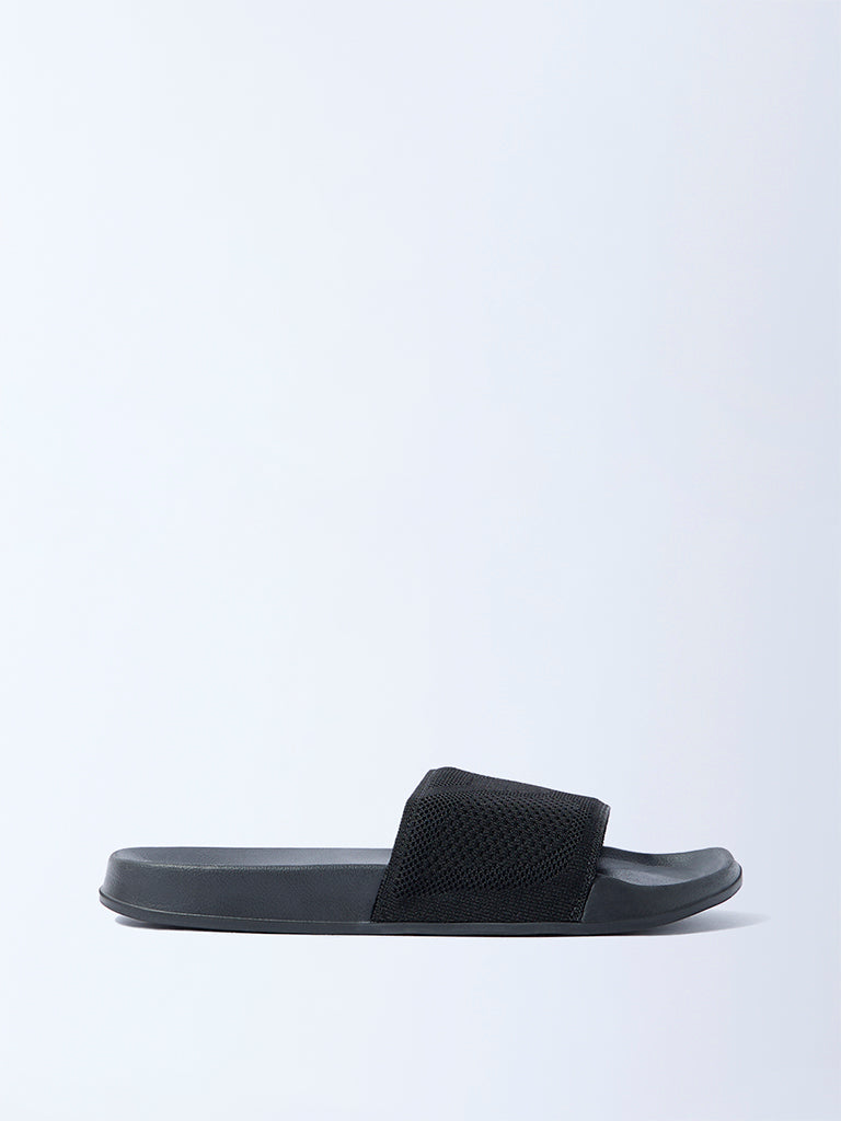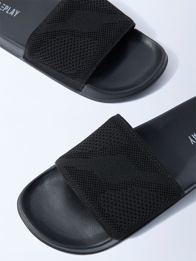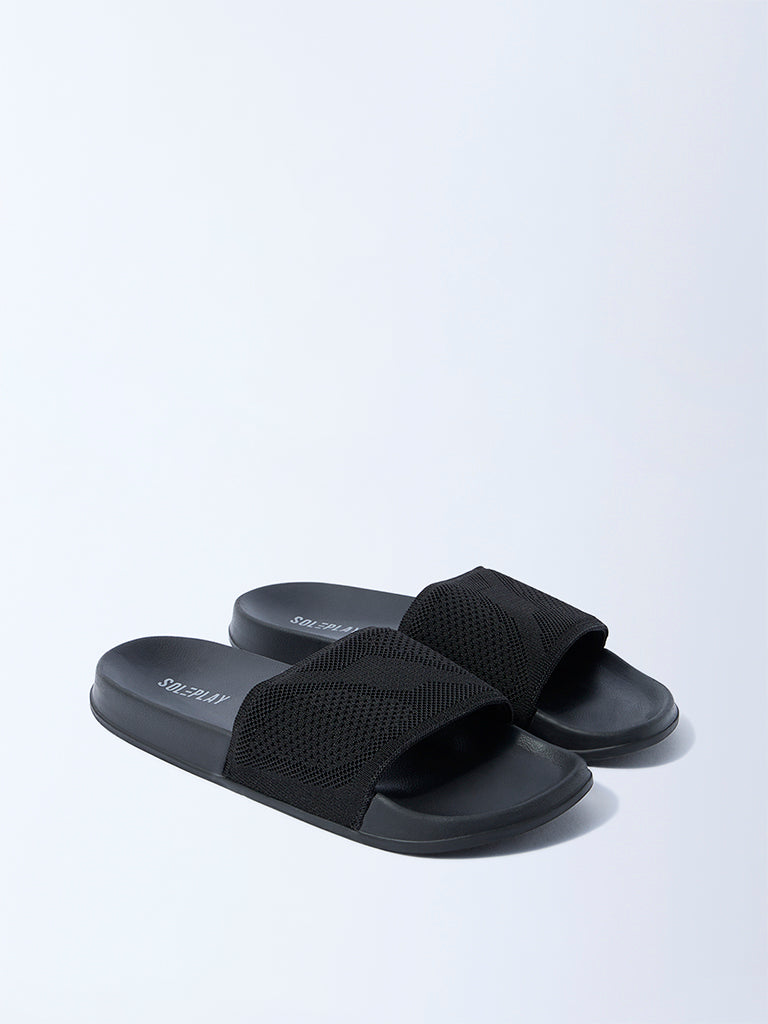 Be the first to review “SOLEPLAY Black Knit-Textured Slides” Cancel reply