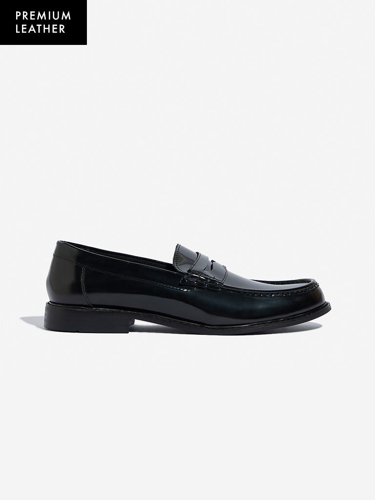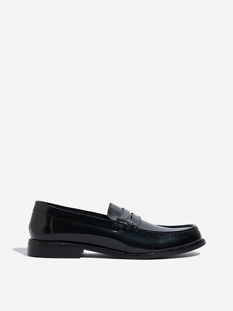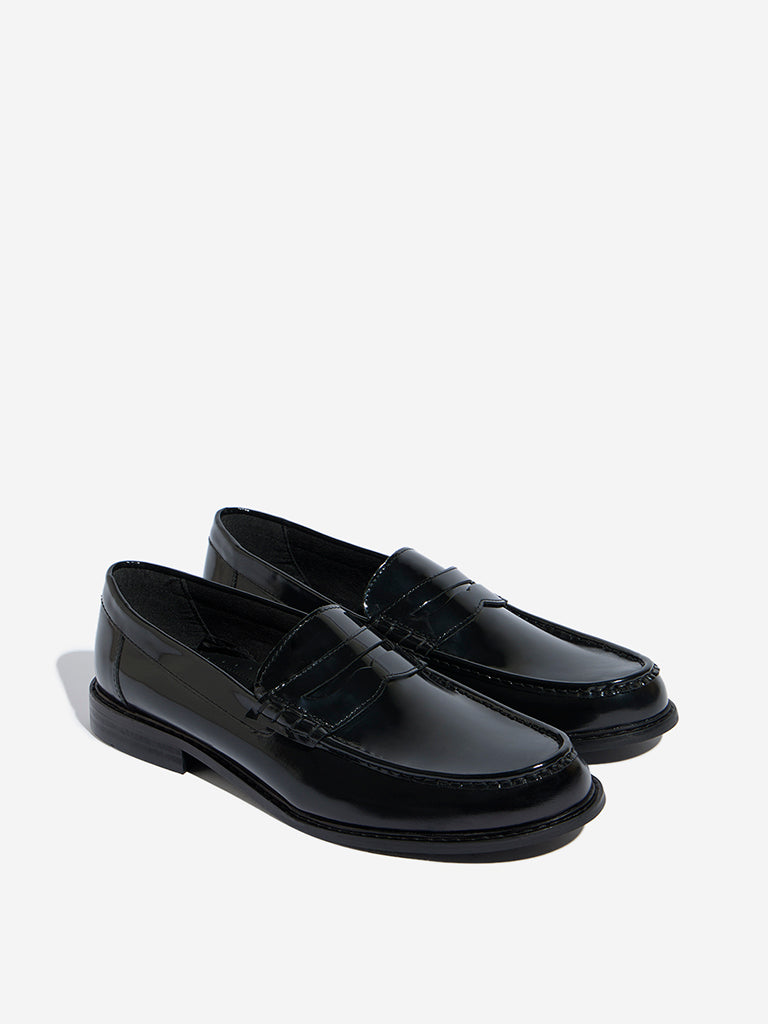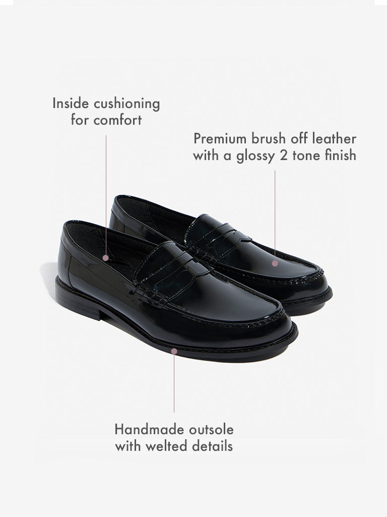 Add a touch of sophistication with these sleek black penny loafers by Soleplay. Crafted from durable materials. they feature a classic penny strap design and a soft insole for unmatched comfort. The textured. elevated outsole completes the suave look with added practicality.