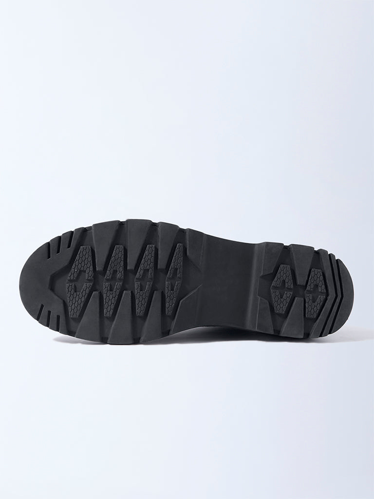 Update your footwear rotation with these black Chelsea boots from Soleplay. crafted in soft suede for a refined matte finish. Designed with classic elastic side panels and a pull tab for easy wear. they rest on a chunky lug sole that lends modern edge to the timeless silhouette.
