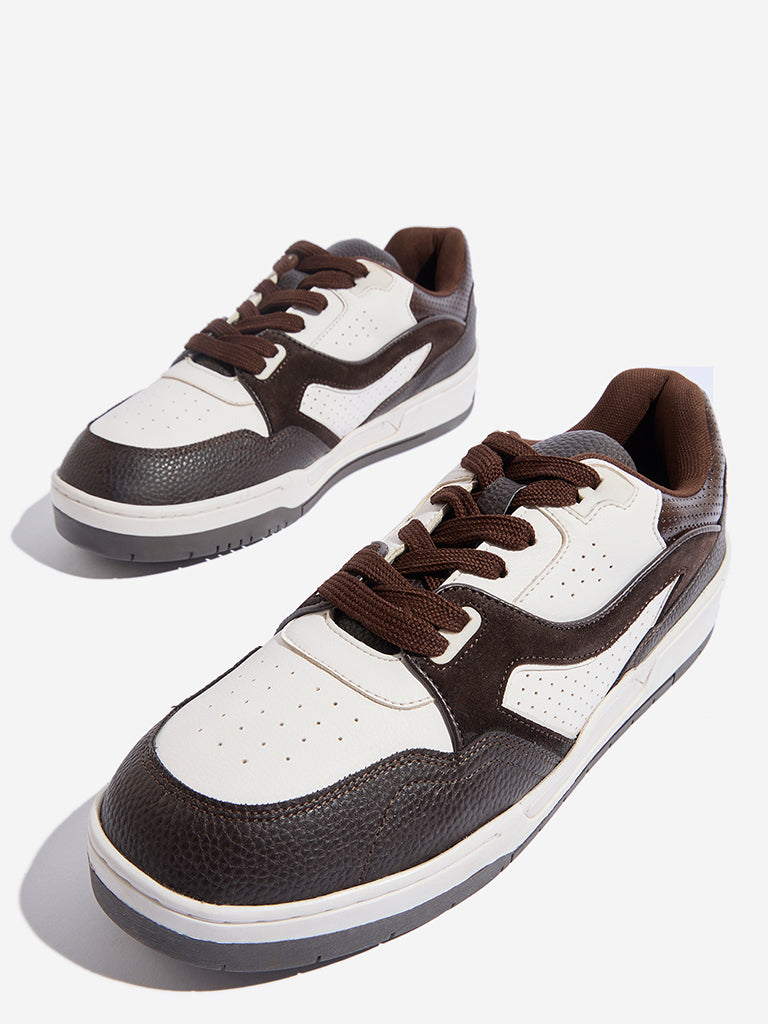 SOLEPLAY Brown Colour-Blocked Lace-Up Sneakers
