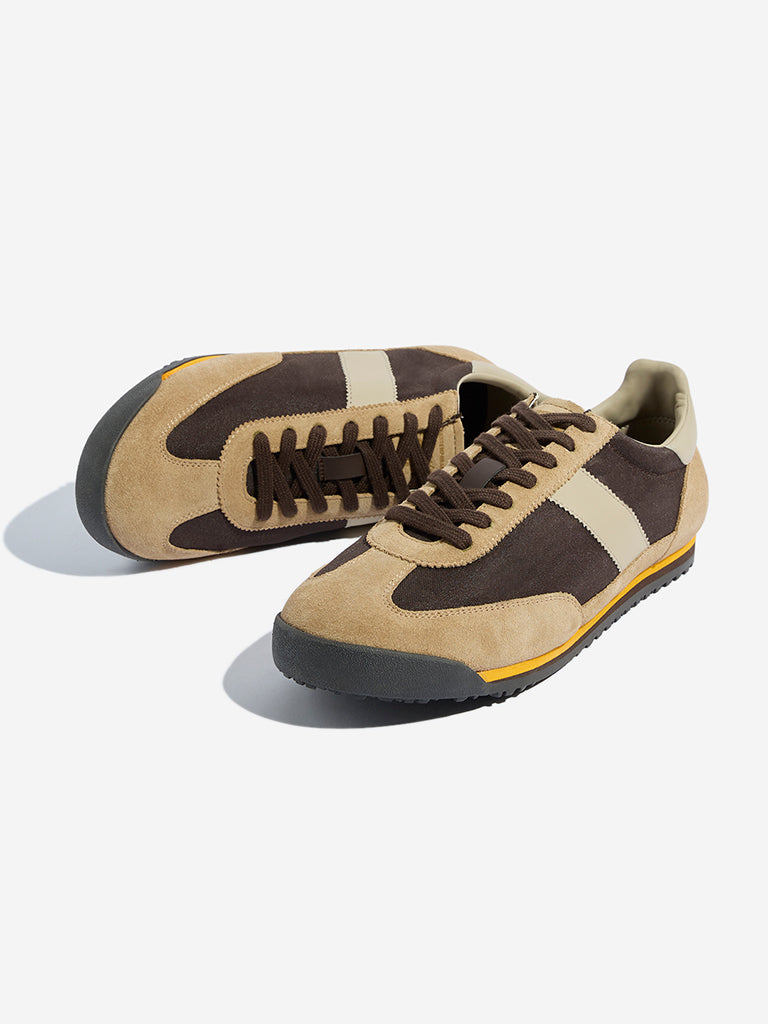 SOLEPLAY Brown Colour-Blocked Lace-Up Sneakers