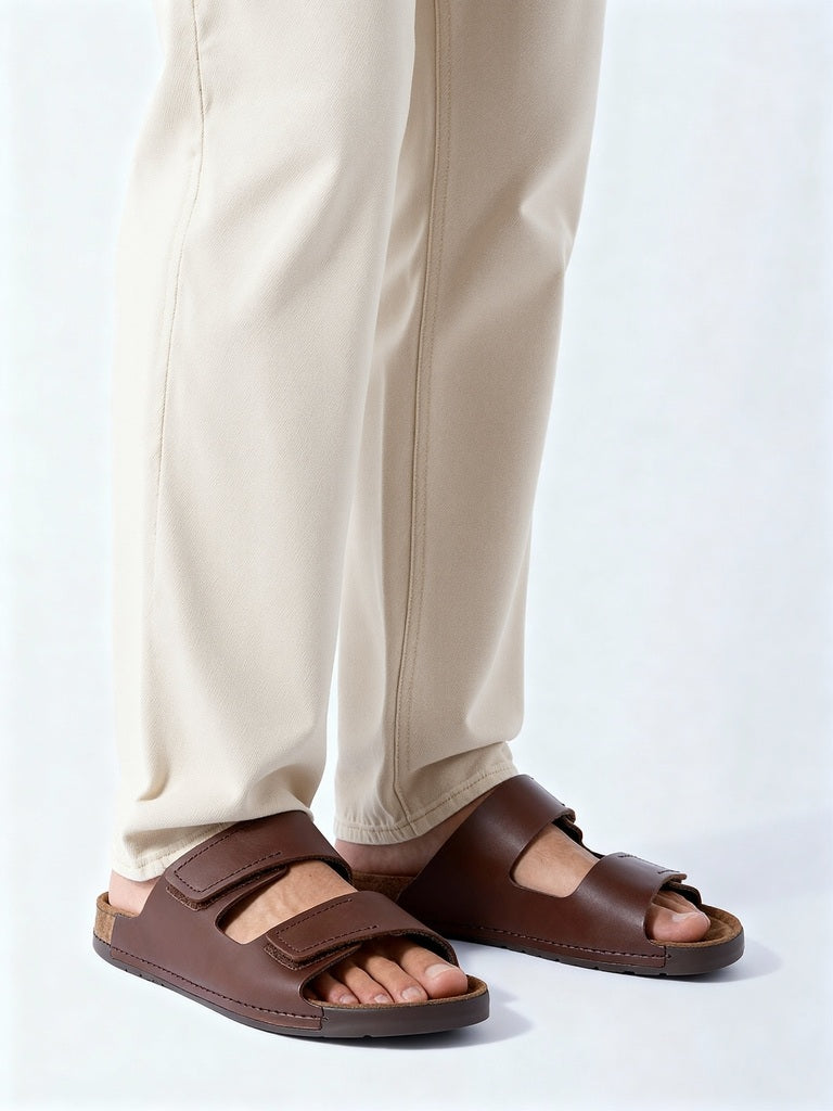 SOLEPLAY Brown Dual Strap Slip-On Sandals
