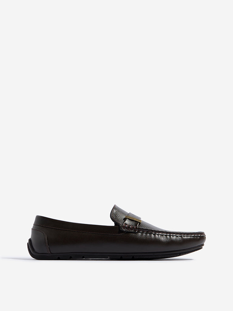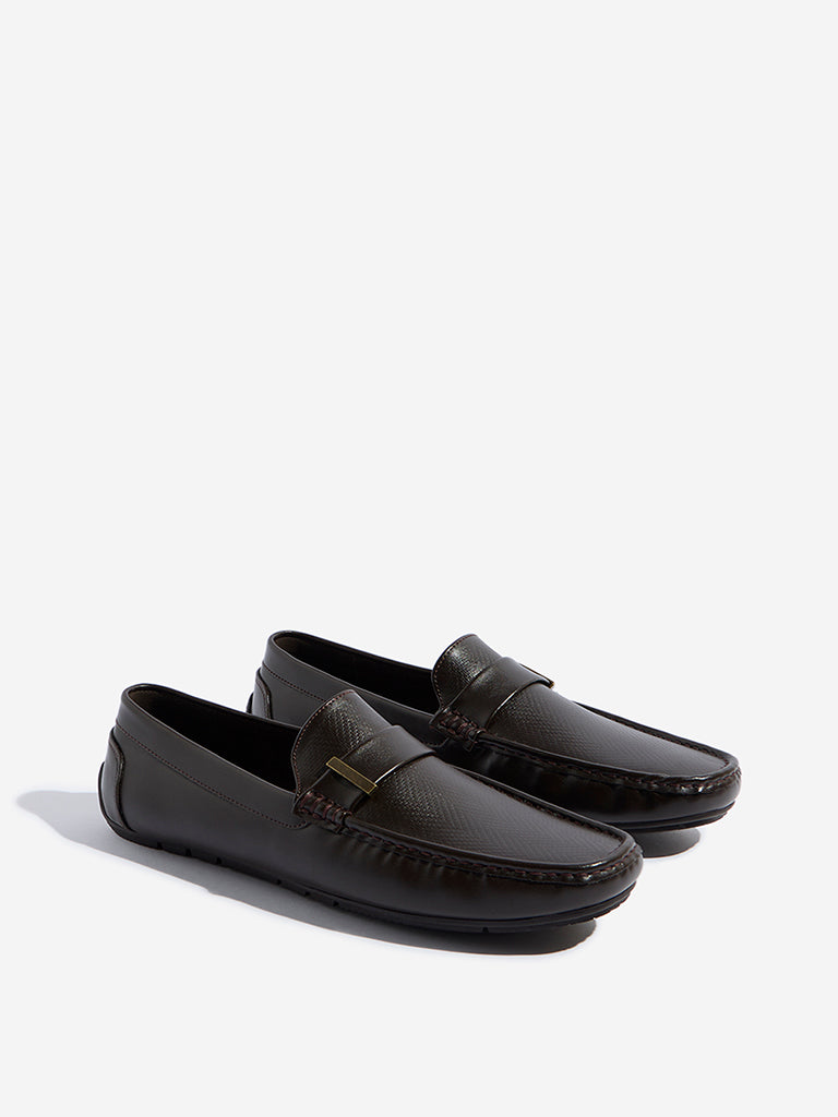 These brown loafers from Soleplay are constructed from premium faux leather. offering a sleek and polished finish. Designed in a classic slip-on silhouette. they are accented with subtle metal detailing on the upper for a refined touch.