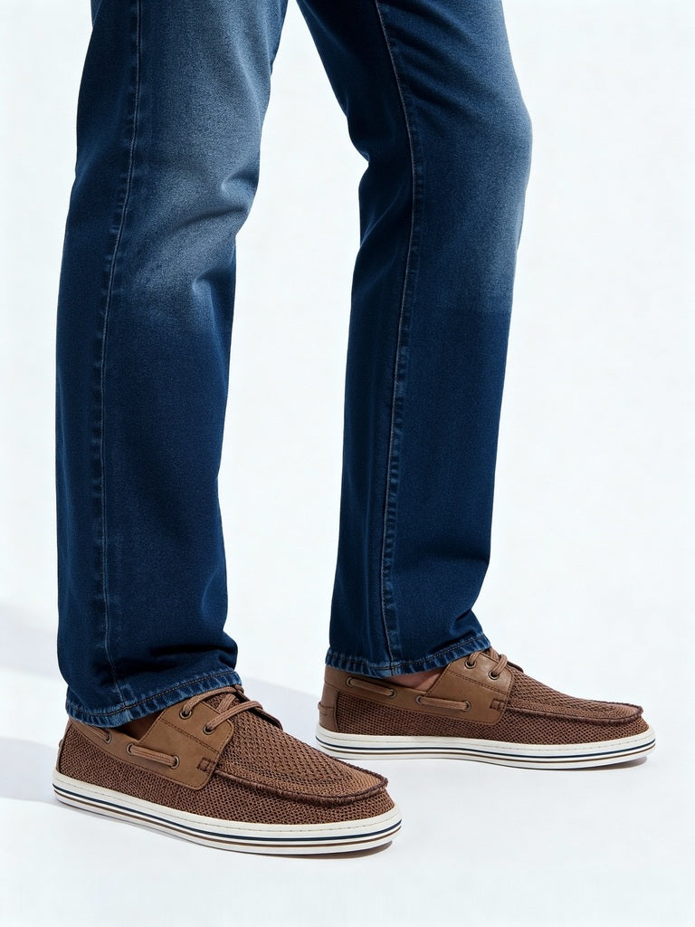 Elevate your casual footwear collection with these brown lace-up shoes from Soleplay. Featuring a breathable knit-textured upper. they blend comfort with laid-back style. Designed with a striped rubber sole for sporty flair. these shoes offer a snug fit and easy versatility for everyday wear.